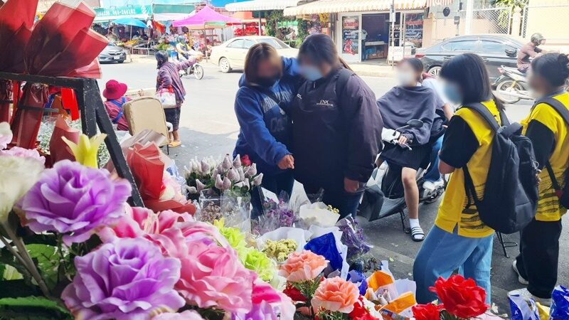โดยมีลูกค้าแวะมาเลือกซื้อกันอย่างคึกคักตลอดทั้งวัน นอกจากดอกไม้สด ดอกไม้พลาสติก และดอกไม้แห้งแล้ว หลายร้านยังมีการนำธนบัตรเงินสดมาจัดเป็นช่อดอกไม้มาวางขายหน้าร้านอีกด้วย เช่นที่ร้านอ้วนดอกไม้ ร้านขายดอกไม้รายใหญ่ในตลาดแม่กิมเฮง นำธนบัตรชนิดต่างๆมาจัดเป็นช่อดอกไม้วางขายหน้าร้าน มีลูกค้ามาเลือกซื้อไปให้คนรักเนื่องในเทศกาลวันวาเลนไทน์อย่างต่อเนื่อง