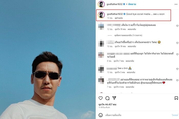 ขณะที่ในไอจีของหนุ่ม ก๊อต จิรายุ ยังคงมีภาพคู่กับสาวโบว์อยู่ โดยภาพคู่ล่าสุดเป็นภาพจากทริปเที่ยวเกาหลีด้วยกันพร้อมครอบครัวเมื่อเดือนกุมภาพันธ์ที่ผ่านมา และล่าสุด วันเดียวกัน (19 เมษายน 2566) ก๊อต ได้โพสต์ภาพตัวเอง พร้อมข้อความว่า"Good bye social media … see u soon" จนหลายคนเข้ามาคอมเมนต์สนั่น ห่วงว่าเกิดอะไรขึ้น บางก็เศร้าแล้วถามกันรัวๆ ว่าไม่ใช่อย่างที่คิดหรือที่เป็นกระแสข่าวตอนนี้ใช่ไหม อาทิ