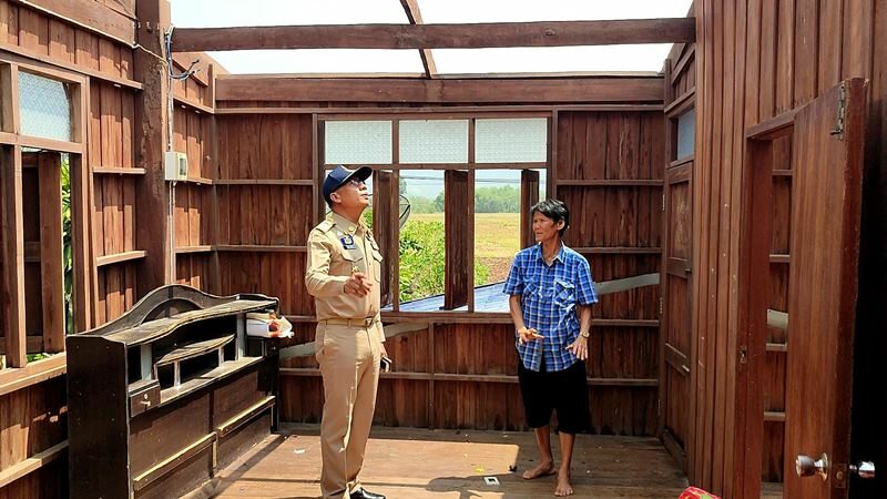 วันที่ 24 เม.ย. 66 ผู้สื่อข่าวรายงานว่า หลังจากเกิดพายุฤดูร้อนในหลายพื้นที่ของอำเภอวังโป่ง สร้างความเสียหายเป็นวงกว้าง นายสุเทพ เบียร์ดี นายอำเภอวังโป่ง พร้อมหน่วยงานที่เกี่ยวข้อง ลงพื้นที่สำรวจความเสียหายบ้านเรือนประชาชนพบว่าพื้นที่ตำบลวังหิน หมู่ 1,2,8 ,10 – 14 และหมู่ 16 ถูกลมพายุพัดเสียหายกว่า150 หลังคาเรือน บางหลังหลังคาบ้านปลิวหาย