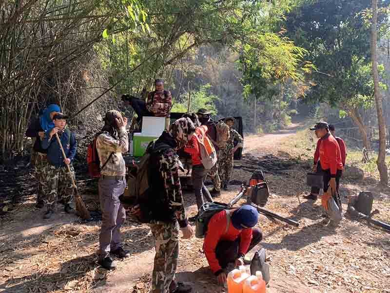 วันที่ 19 ก.พ. 2567 ผู้สื่อข่าวรายงานว่า ที่อุทยานแห่งชาติพุเตย อ.ด่านช้าง จ.สุพรรณบุรี ซึ่งช่วงนี้เกิดไฟป่าในพื้นที่เนื่องจากสภาพอากาศแห้งแล้ง เจ้าหน้าที่พร้อมอาสาสมัครต้องเร่งช่วยกันทำแนวกันไฟ แต่กลับมีอุปสรรคที่ทำให้เจ้าหน้าที่ต้องเสี่ยงอันตรายขณะช่วยกันดับไฟ