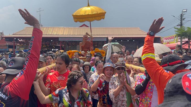 ศิษยานุศิษย์ แน่นวัดจุฬามณี แห่สรงน้ำ หลวงพ่อเนื่อง เกจิดัง ไม่พลาดส่องเลขเด็ด