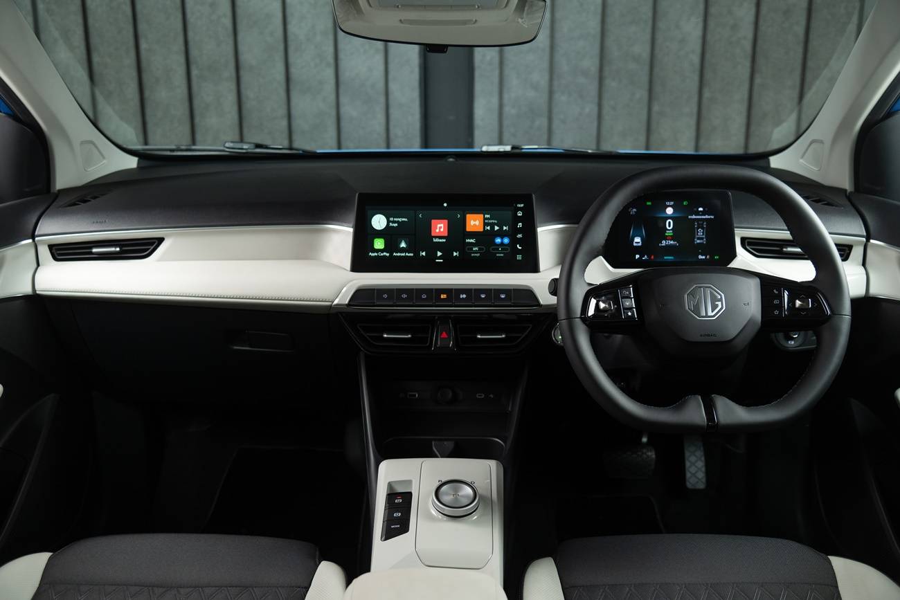 แผงคอนโซลหน้าดีไซน์ไฮเทค พวงมาลัยมัลติฟังก์ชันยกมาจาก MG4 Electric ติดตั้งจอคู่ประกอบด้วยมาตรวัดดิจิทัลขนาดใหญ่ 7 นิ้ว Digital Multi – Function Display มีจอสัมผัสขนาดใหญ่รองรับเชื่อมต่อแบบไร้สายทั้ง Apple CarPlay และ Android Auto ขนาด 10.25 นิ้ว มีช่องเสียบ USB ลำโพง 6 จุด ระบบปฏิบัติการอัจฉริยะ i–SMART ที่ช่วยยกระดับคุณค่าและประสบการณ์การขับขี่ของผู้ใช้รถยนต์เอ็มจี รวมถึงการเชื่อมต่อทุกไลฟ์สไตล์ให้ง่ายยิ่งขึ้น ระบบปรับอากาศแบบดิจิตอลพร้อมช่องแอร์ด้านหลัง สวิตช์การทำงานที่จำเป็นช่องแอร์ดีไซน์หรู และเกียร์อัตโนมัติแบบปุ่มหมุน Shift By Wire พร้อมเบรกมือไฟฟ้าและ Auto Hold ระบบกุญแจรีโมทอัจฉริยะ (Smart Key) พร้อมปุ่ม Push Start