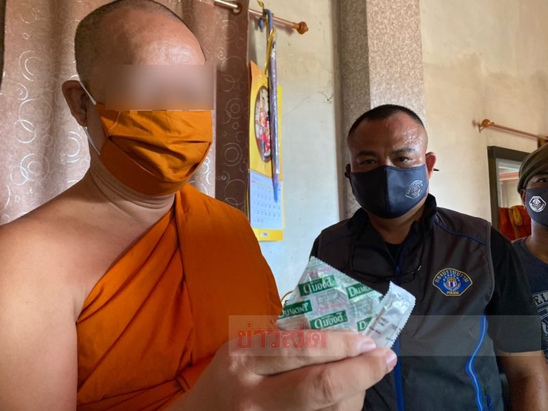 ถุงยางอนามัยที่พบขณะเข้าทำการจับกุมภายในกุฏิของเจ้าอาวาสวัด