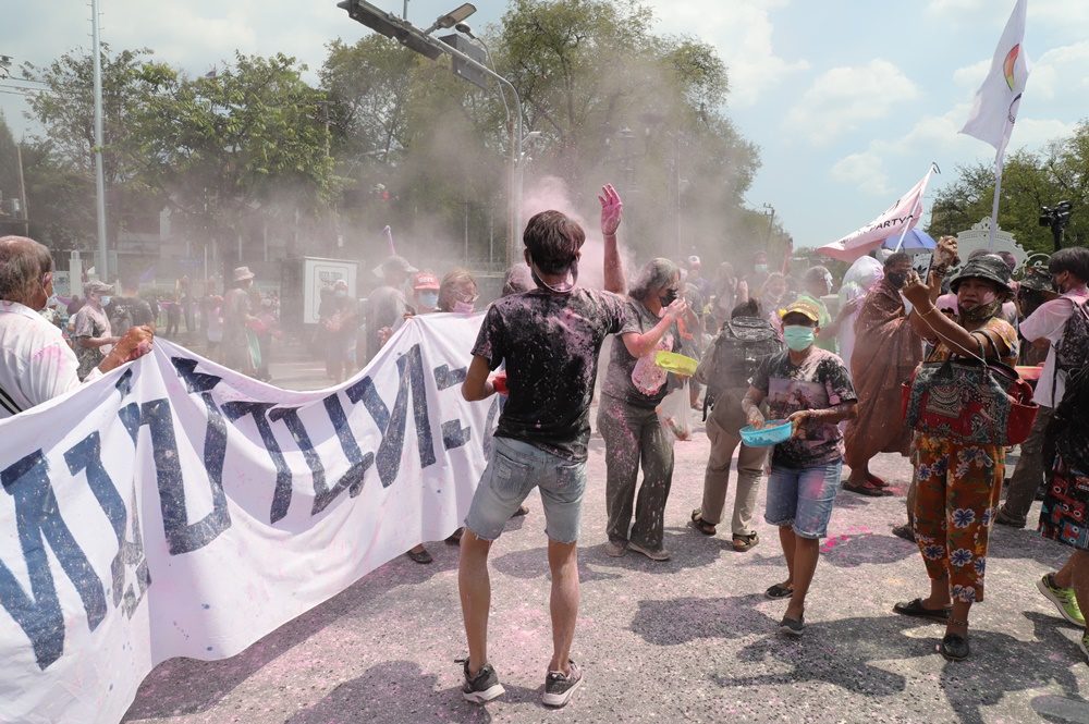 ม็อบทะลุฟ้า จัดกิจกรรมปาสีใส่ ประยุทธ์-ครม. อ่านแถลงการณ์ 3 ข้อ จี้ลาออก