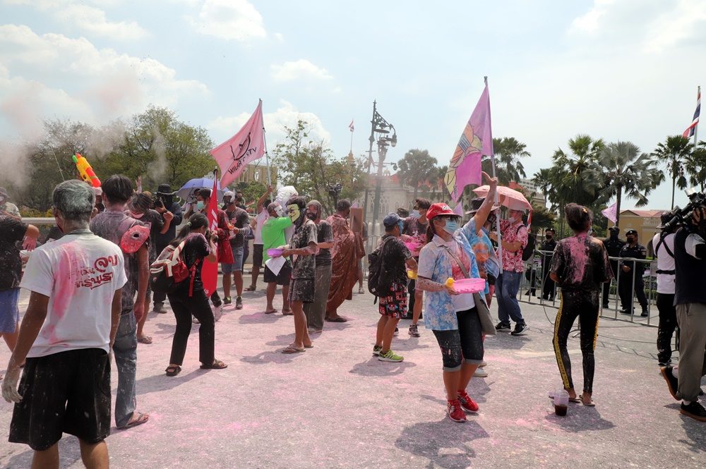 ม็อบทะลุฟ้า จัดกิจกรรมปาสีใส่ ประยุทธ์ และ ครม. อ่านแถลงการณ์ 3 ข้อเรียกร้อง ปล่อยเพื่อนเรา-บิ๊กตู่ ต้องลาออก ตำรวจควบคุมฝูงชน วางกำลังเข้ม