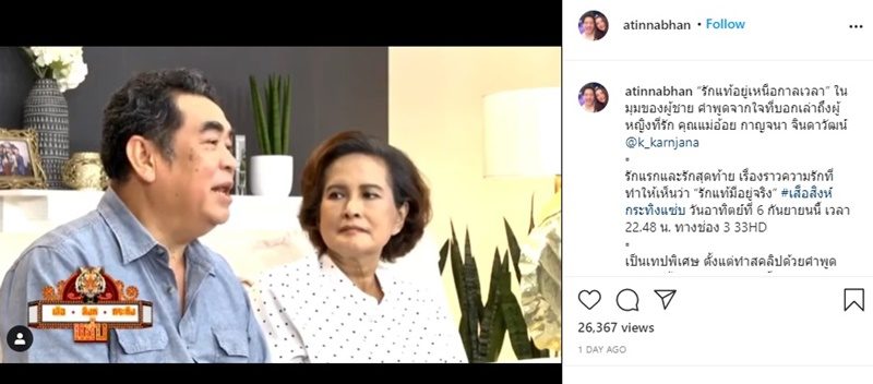 พร้อมเผยด้วยว่า ““รักแท้อยู่เหนือกาลเวลา” ในมุมของผู้ชาย คำพูดจากใจที่บอกเล่าถึงผู้หญิงที่รัก คุณแม่อ้อย กาญจนา จินดาวัฒน์ @k_karnjana
