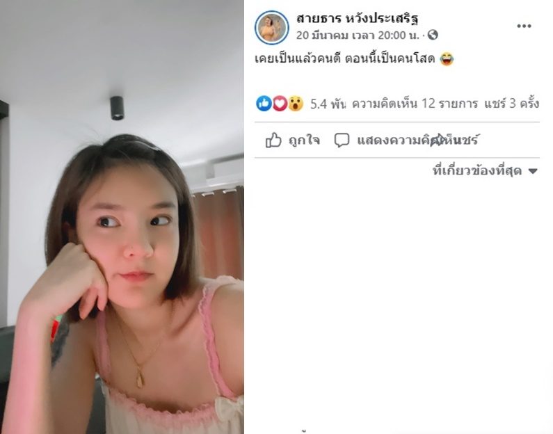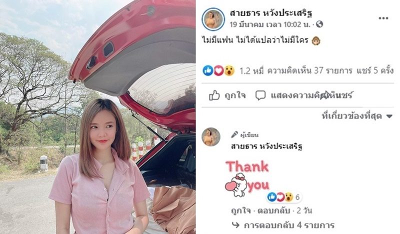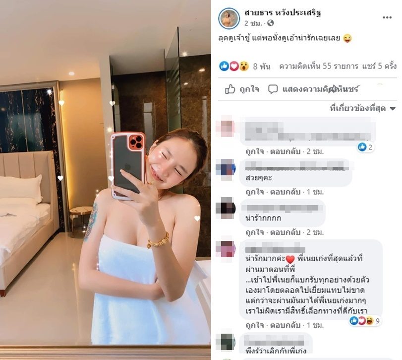 ล่าสุดความเคลื่อนไหวเวลาเดียวกัน น้องเนย สายธาร แฟนเก่า ก็โพสต์ภาพเซ็กซี่น่ารักของตัวเอง พร้อมแคปชั่น “ลุคดูเจ้าชู้ แต่พอนั่งดูเอ้าน่ารักเฉยเลย” พร้อมทั้งคอมเมนต์ของแฟนคลับเข้ามาให้กำลังใจจำนวนมากให้สู้ๆ อาทิ “น่ารักมากค่ะ พี่เนยเก่งที่สุดแล้วที่ผ่านมาตอนที่พี่…เข้าไปพี่เนยก็แบกรับทุกอย่างด้วยตัวเองมาโดยตลอดไปเยี่ยมแทบไม่ขาด แต่กว่าจะผ่านมันมาได้พี่เนยเก่งมากๆ เราไม่ผิดเรามีสิทธิ์เลือกทางที่ดีกับเรา” เป็นต้น