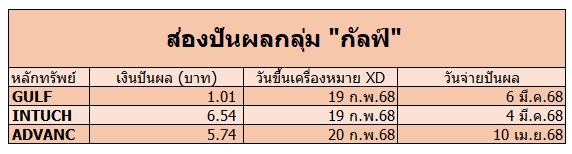 พร้อมกันนี้ บริษัทในกลุ่ม GULF ได้มีการจ่ายปันผลให้กับนักลงทุน ซึ่งมีรายละเอียดตามตารางด้านล่างนี้
