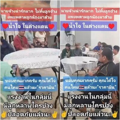 แรงงานไทยนึกว่าถูกทิ้ง นายจ้างใจดีพาไปอยู่ด้วย เขียนป้ายต้อนรับเป็นภาษาไทย ไม่ได้ทำงาน ก็จ่ายค่าแรง