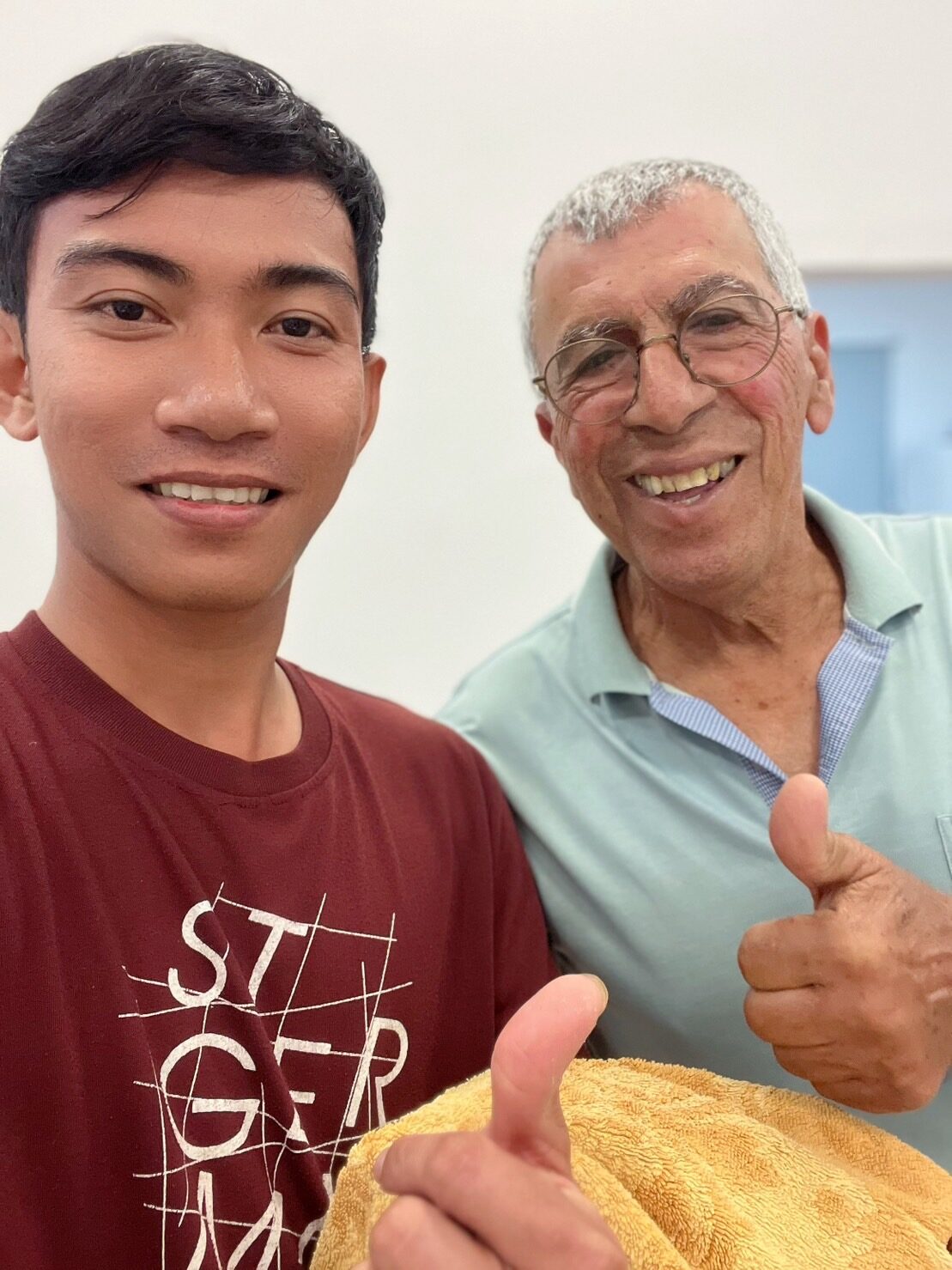 “นายจ้างให้ลูกชายที่เป็นทหาร มาอพยพแรงงานที่อยู่ในแคมป์ออกจากพื้นที่ให้หมด แล้วก็มาอาศัยที่บ้านพักทางตอนกลางของอิสราเอล ทันทีที่มาถึงพวกเราแทบไม่ต้องยกกระเป๋าเองเลย เพราะว่ามีชาวบ้านที่อยู่ในหมู่บ้าน มาช่วยกันยกกระเป๋าให้แล้วต้อนรับอย่างดี