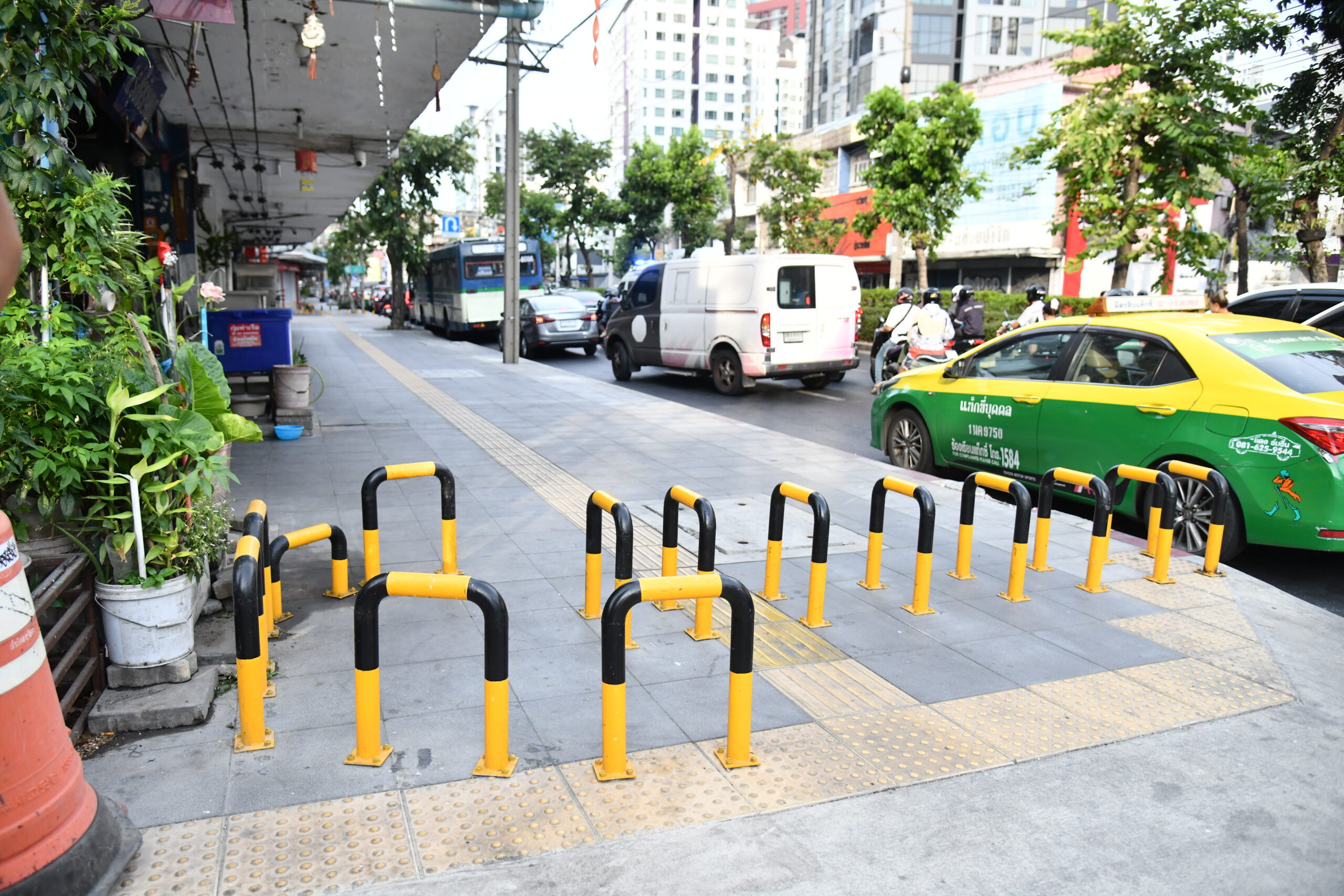 สำนักงานเขตคลองเตยจึงติดตั้ง S-Guard หรือแท่งเหล็กบนทางเท้า เพื่อช่วยป้องกันรถจักรยานยนต์ ซึ่งสามารถช่วยแก้ปัญหาได้อย่างมีประสิทธิภาพ โดยก่อนดำเนินการได้สอบถามความคิดเห็นจากผู้ใช้เส้นทาง เนื่องจากเป็นจุดที่อยู่ใกล้สถานีรถไฟฟ้า BTS และมีทั้งชาวไทยและชาวต่างชาติสัญจรเป็นจำนวนมาก