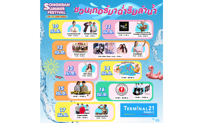 เทอร์มินอล21 พระราม3 สาดสนุกความฉ่ำ ดับร้อนต้อนรับเทศกาลสงกรานต์ ในงาน “Songkran Summer Festival 2024” สุดว้าวกับสวนน้ำลอยฟ้าริมแม่น้ำเจ้าพระยา