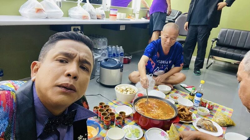 ขณะที่ นุ้ย เชิญยิ้ม ไลฟ์บรรยากาศในงานสนุกสนาน เหล่าพี่น้องตลกมากันหมดจริงๆ ร่วมเตะบอลท่ามกลางอากาศร้อนก็สู้ไม่ถอย