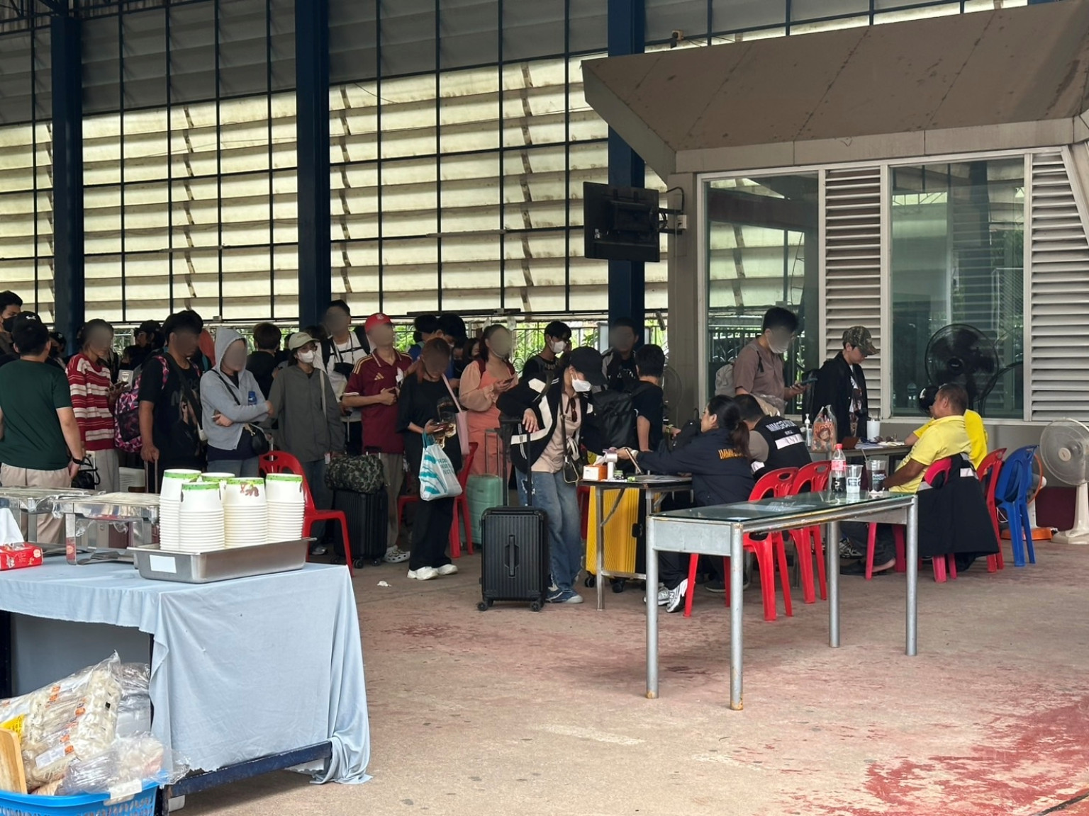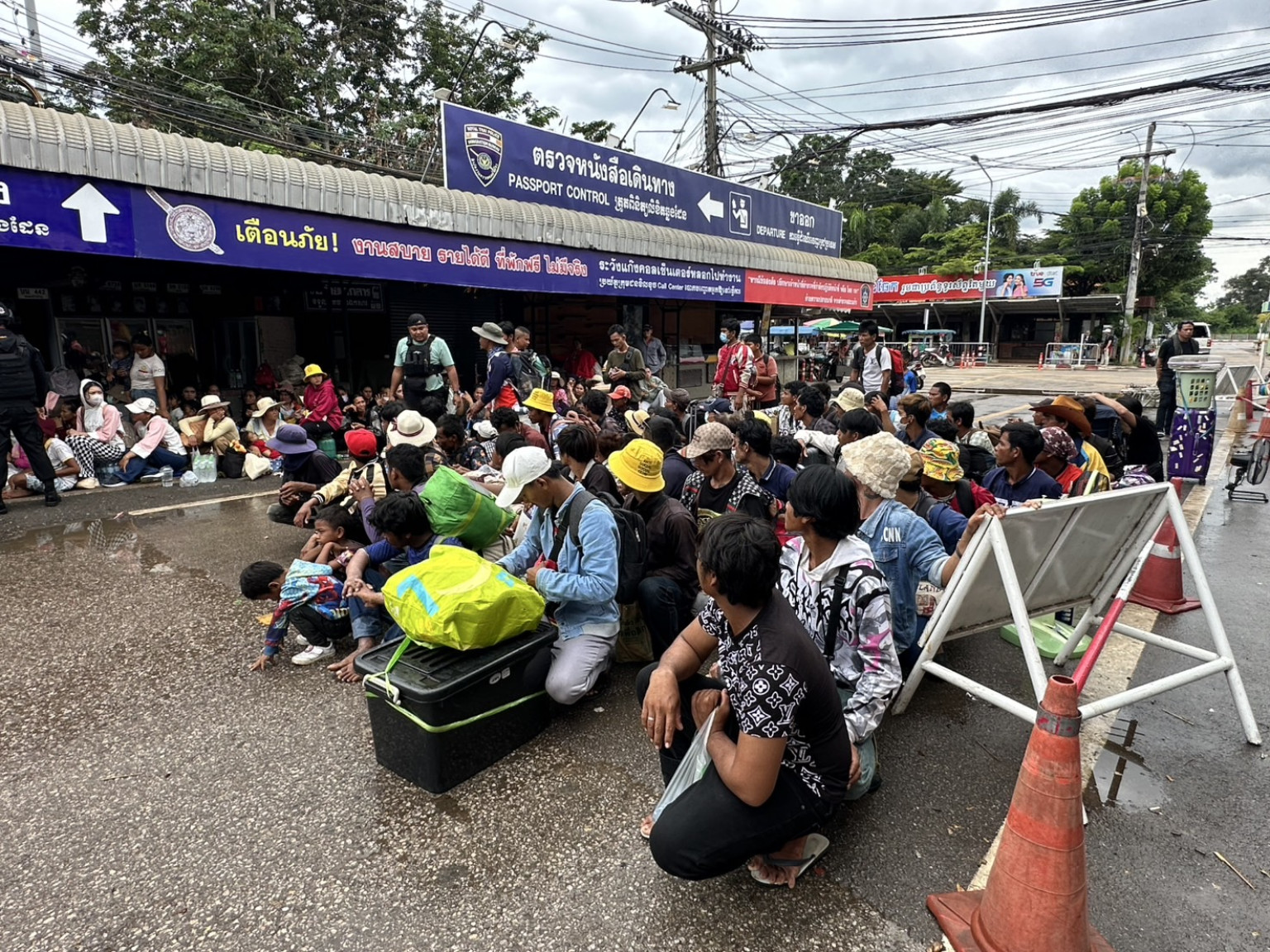 วันที่ 28 ก.ค.68 เจ้าหน้าที่ไทย-กัมพูชา เจราจาขอเปิดประตูเล็ก ด่านบ้านคลองลึก อรัญประเทศ นำคนของตัวเองกลับเข้าประเทศ ขณะที่ไทยยังผลักดันแรงงานผิดกฎหมายกลับประเทศพร้อมด้วย ที่ บริเวณจุดตรวจหนังสือเดินทางขาออก จุดผ่านแดนถาวรบ้านคลองลึก อำเภออรัญประเทศ จังหวัดสระแก้ว วันนี้ตั้งแต่ช่วงเช้า มีแรงงานชาวกัมพูชาจำนวนเกือบ 1,000 คน เดินทางมาจากหลายจังหวัดทั่วประเทศไทย เพื่อรอข้ามแดนกลับประเทศท่ามกลางสภาพอากาศร้อนอบอ้าว