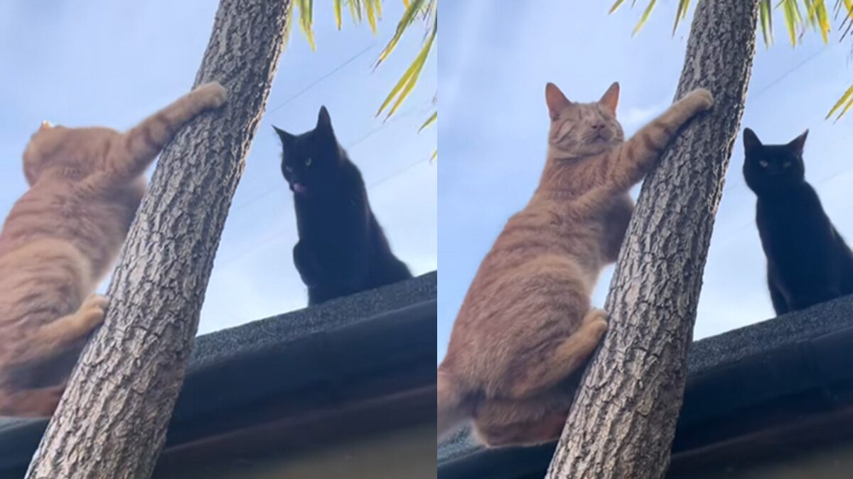 อ่านข่าวต้นฉบับได้ที่ : เลือดมันร้อน! แมวส้มห้าว ตามองไม่เห็นก็ยังปีนต้นไม้ ท้าตีบนหลังคาอย่างเซียน