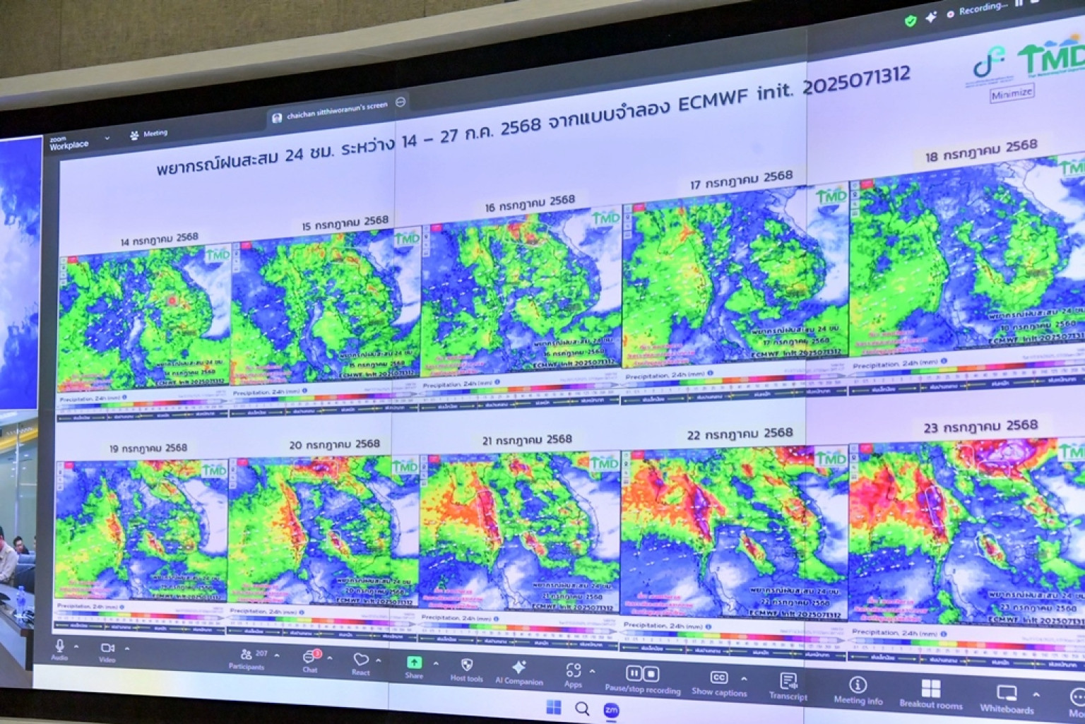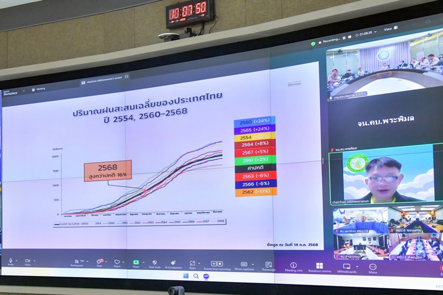 วันที่ 14 ก.ค.68 นายเดช เล็กวิชัย รองอธิบดีกรมชลประทาน เป็นประธานการประชุมคณะอนุกรรมการติดตามและวิเคราะห์แนวโน้มสถานการณ์น้ำ โดยมีหน่วยงานที่เกี่ยวข้อง อาทิ กรมอุตุนิยมวิทยา กรมทรัพยากรน้ำ กรมป้องกันและบรรเทาสาธารณภัย และการไฟฟ้าฝ่ายผลิตแห่งประเทศไทย ตลอดจนสำนักงานชลประทานที่ 1 -17 และเจ้าหน้าที่ผู้เกี่ยวข้อง เข้าร่วมประชุม เพื่อติดตามและวิเคราะห์แนวโน้มสภาพอากาศ สถานการณ์น้ำในอ่างเก็บน้ำ แม่น้ำสายหลักต่างๆ สำหรับเป็นข้อมูลในการบริหารจัดการน้ำในช่วงฤดูฝน ให้เกิดประสิทธิภาพสูงสุด ณ ห้องประชุมศูนย์ปฏิบัติการน้ำอัจฉริยะ (SWOC) อาคาร 99ปี หม่อมหลวงชูชาติ กำภู กรมชลประทาน ถนนสามเสน