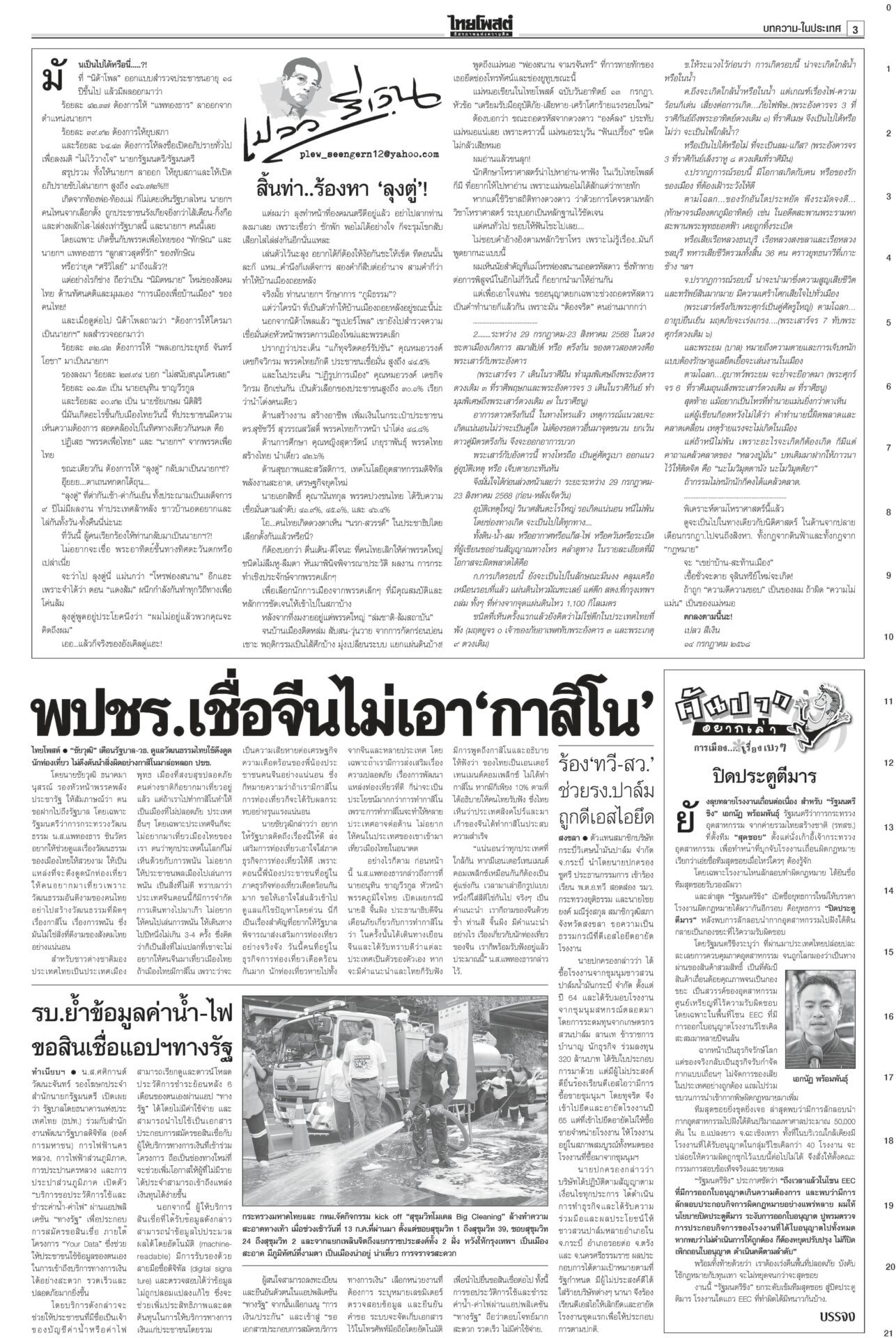 ฉบับวันที่ 14 กรกฎาคม 2568