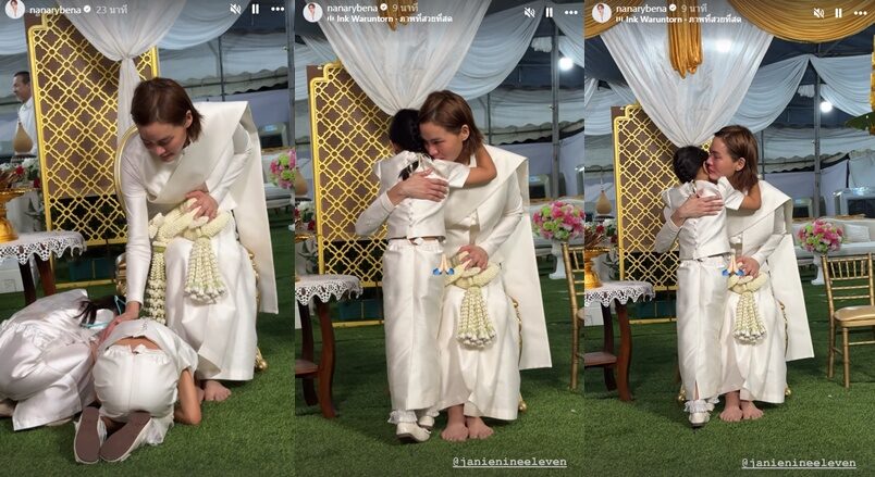 ขณะที่เช้านี้ นานา โพสต์คลิปสุดซึ้ง เจนี่ น้ำตาไหล กราบเท้าคุณแม่ ขณะที่น้องโนล่า ลูกสาว ก็มาร่วมงานบวชคุณแม่ ก้มกราบเท้าคุณแม่ด้วย เป็นบรรยากาศสุดซึ้งมากๆ