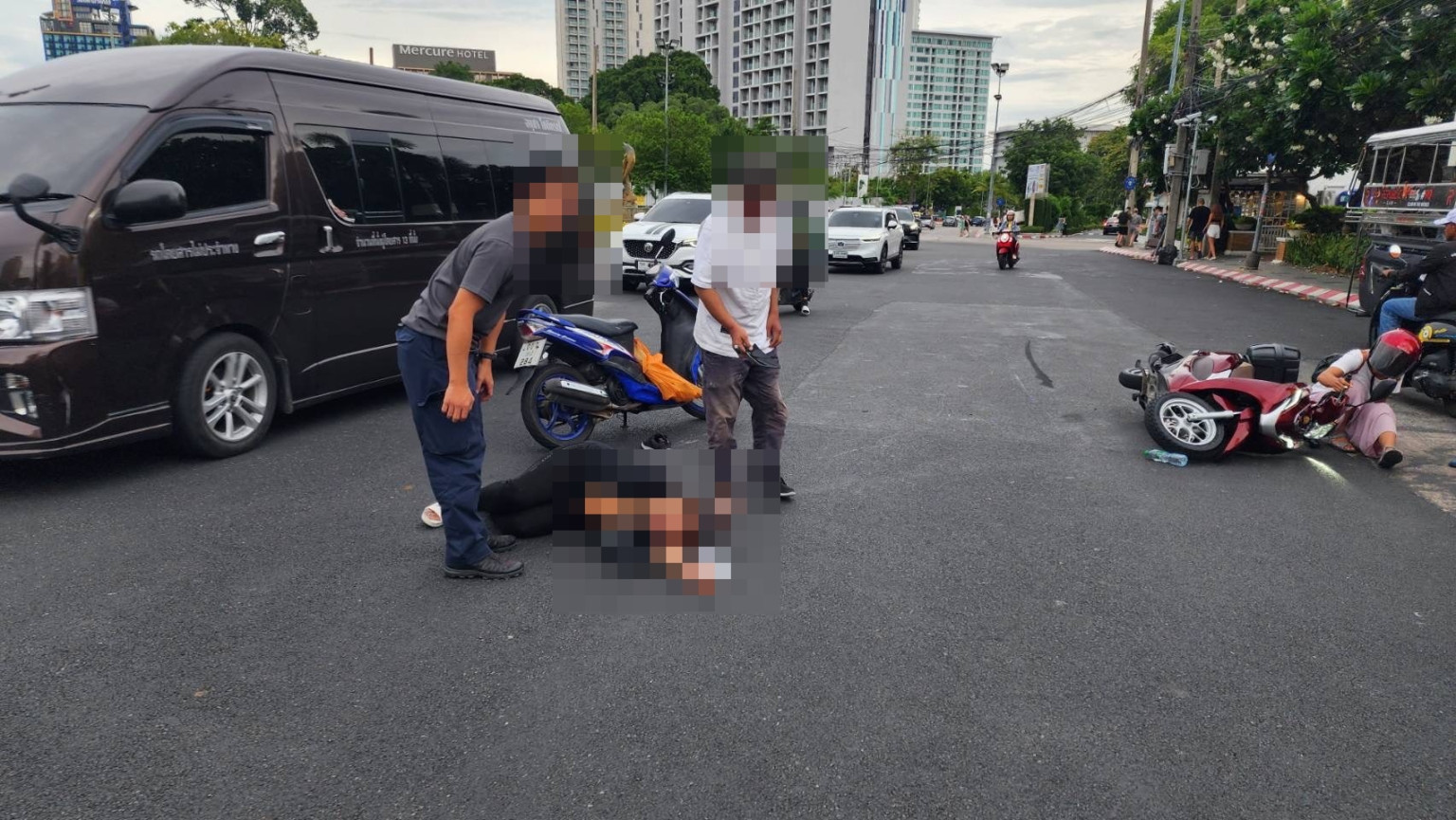 ชื่นชม!ตำรวจท่องเที่ยววิ่งข้ามถนนช่วยชาวบ้านจากอุบัติเหตุจยย.เฉี่ยวชนจนมีผู้บาดเจ็บบนถนนพัทยาเหนือ