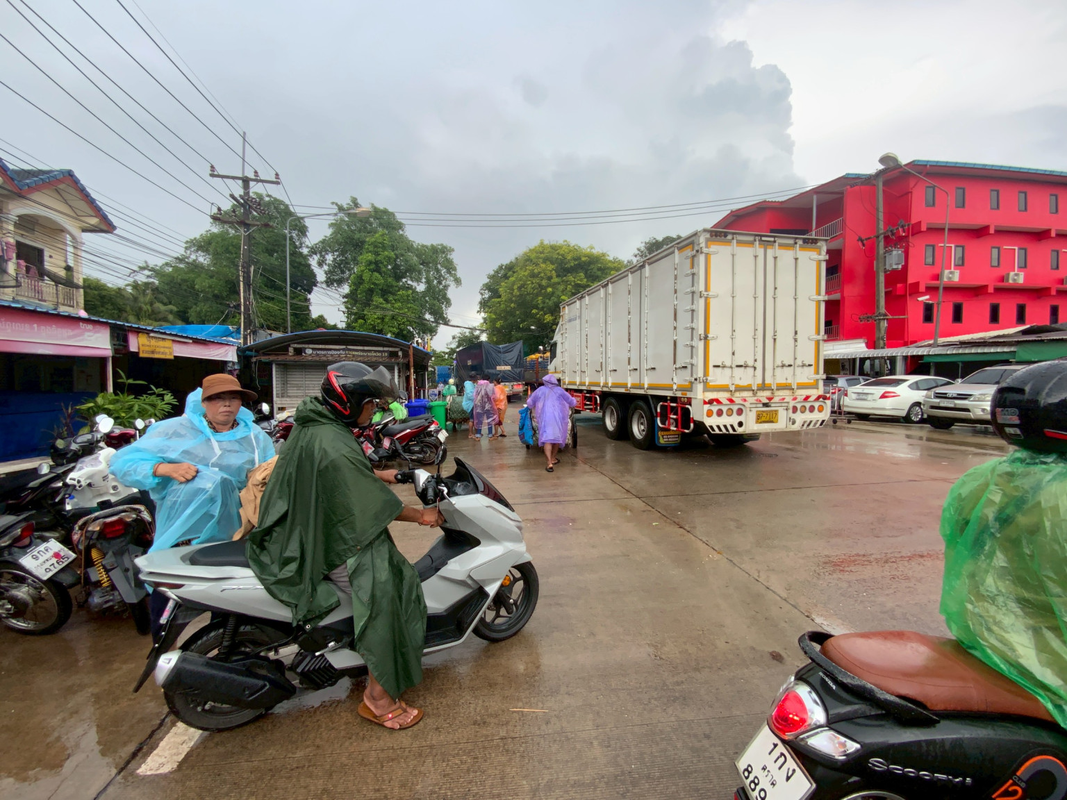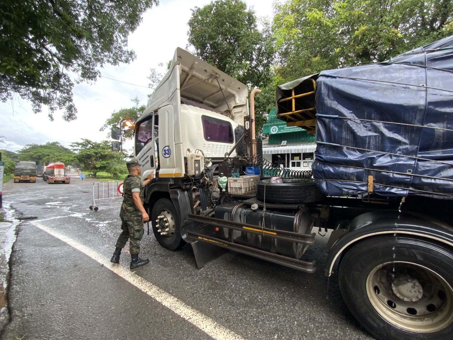 จุดผ่านแดนถาวรบ้านหาดเล็ก อ.คลองใหญ่ จ.ตราด/ก่อนเวลา 08.00 น วันที่ 14 มิถุนายน 2568 ที่จุดผ่านแดนถาวรบ้านหาดเล็ก ต.หาดเล็ก อ.คลองใหญ่ จ.ตราด ผู้ประกอบการขนส่งสินค้าทั้งในจังหวัดตราด และในกรุงเทพซึ่งมีทั้งวัสดุก่สร้าง ปูนซิเมนต์ ผลไม้ และสินค้าอื่นๆกว่า 50 คัน ยืนรอการเปิดจุดผ่นแดนถาวรบ้านหาดเล็กในเวลา 08.00 น.ท่ามกลางฝนที่กำลังจะตก โดยมีทหารนาวิกโยธินหลายคน จากหน่วยเฉพาะกิจนาวิกนาวิกโยธินที่ 182(ฉก.นย.ที่ 182) เตรียมเปิดด่านฯ