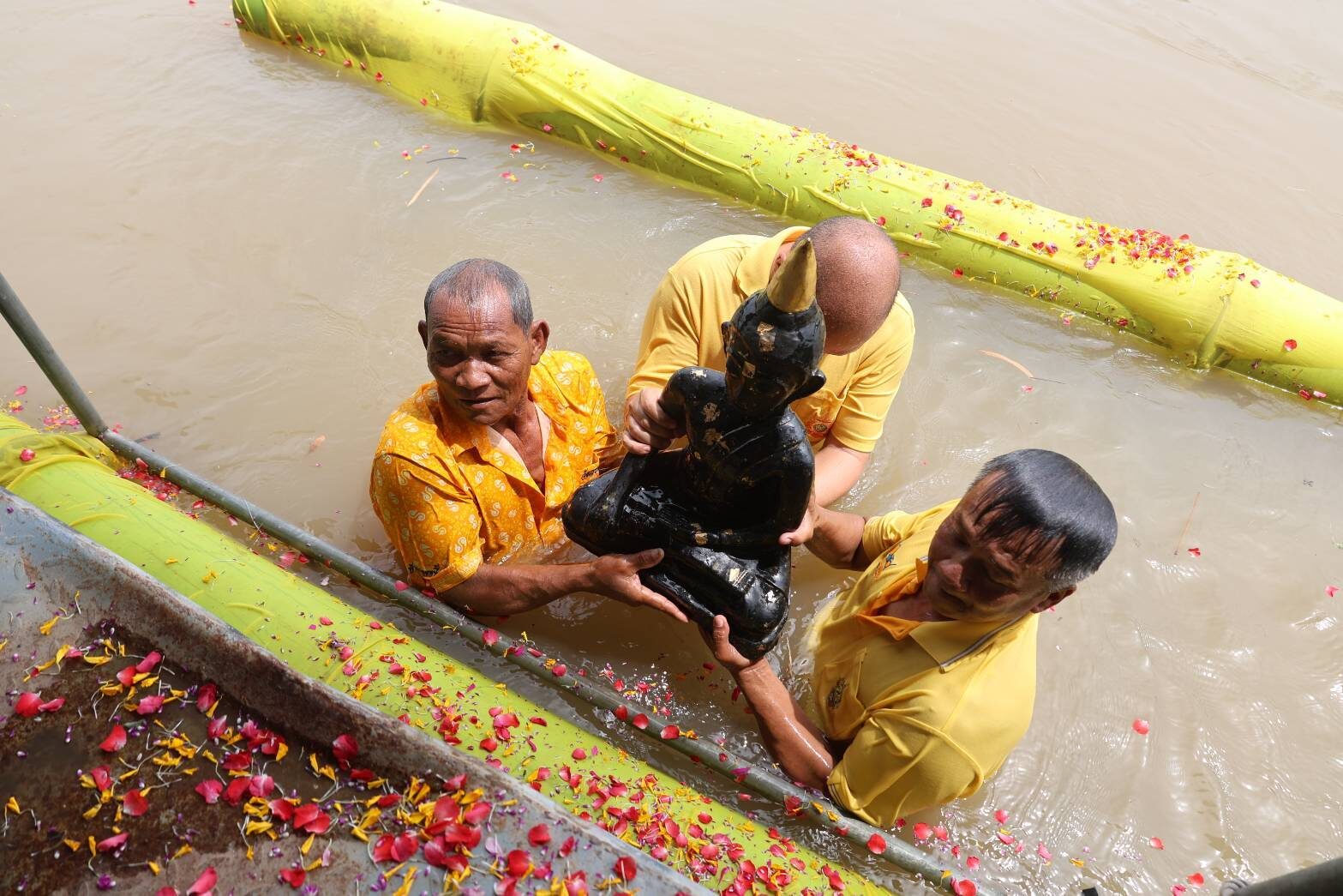 คอหวยเหมาเลขดังเกลี้ยงแผง 2 ตัว 3 ตัวเน้นๆ ประเพณีอุ้มพระดำน้ำ วัดเถรพลาย บรรยากาศสุดคึกคัก แห่กราบไหว้ขอพรจากหลวงพ่อดำแน่นวัด