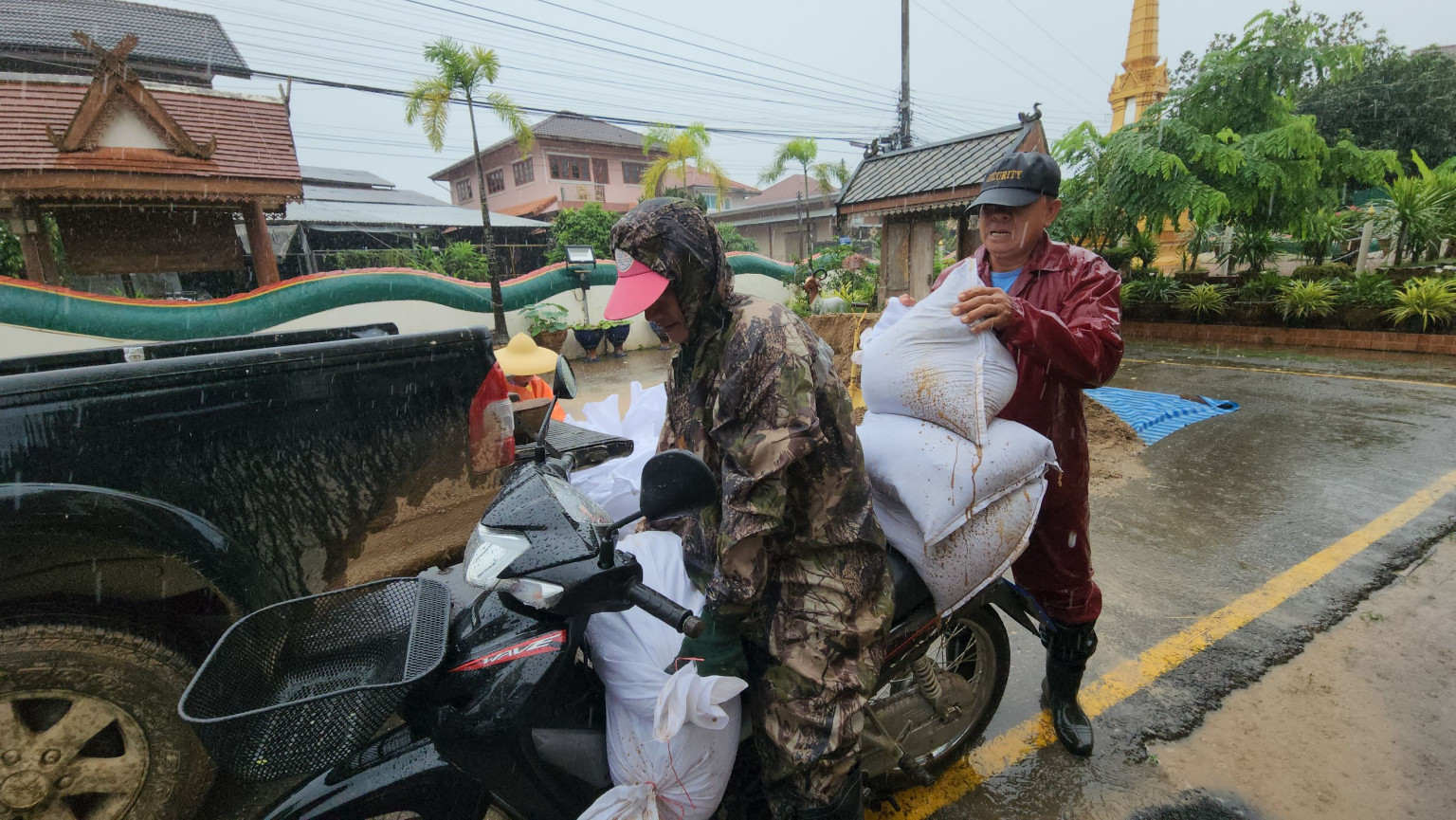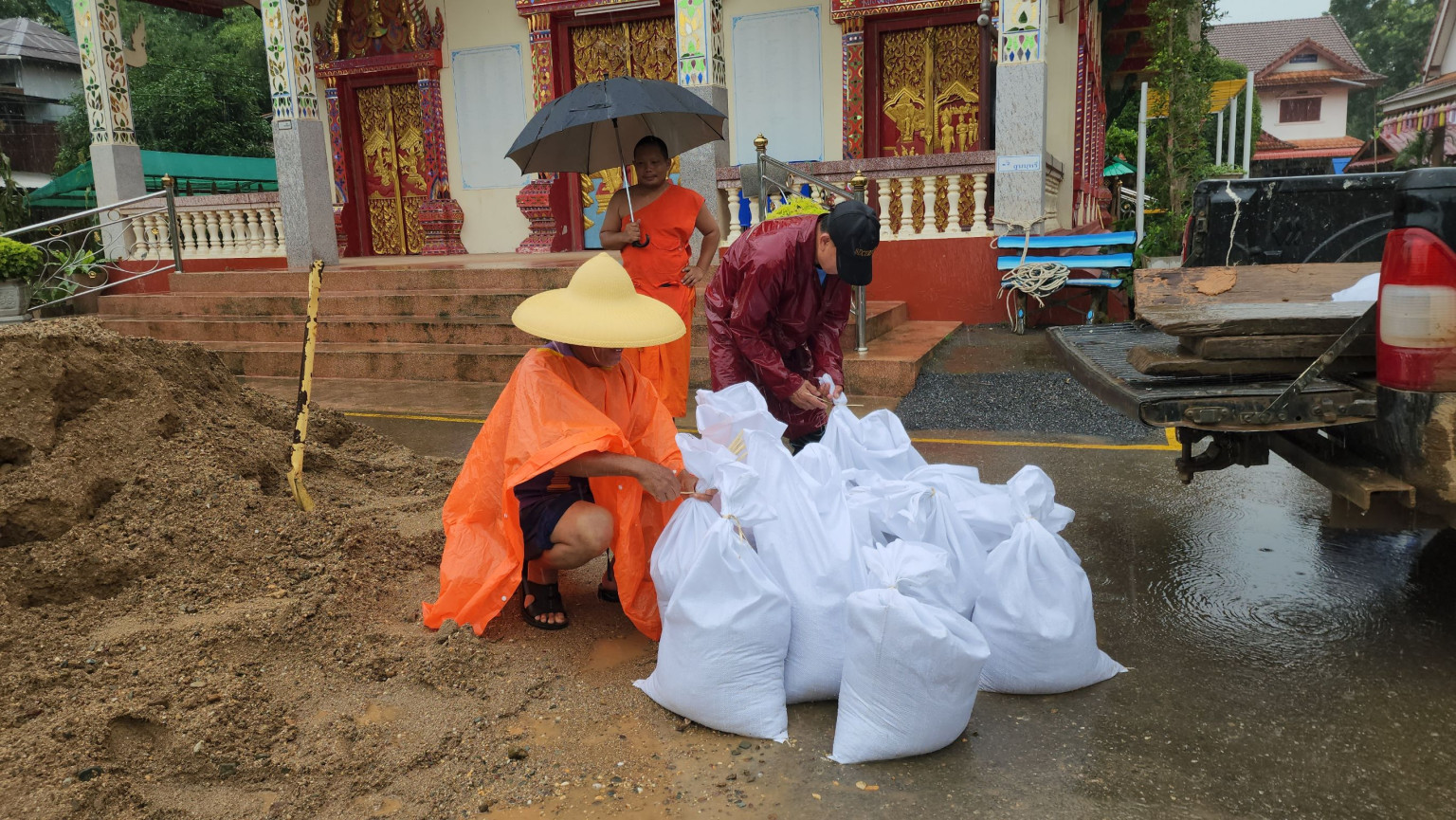 ชาวบ้านในหลายพื้นที่ได้เริ่มเก็บสิ่งของขึ้นที่สูง ขณะที่บางครัวเรือนได้ร่วมกันบรรจุทรายใส่กระสอบเพื่อใช้ในการทำแนวป้องกันน้ำ โดยมีการประสานความร่วมมือกับวัดดอนตัน ซึ่งได้จัดเตรียมทรายไว้เพื่อช่วยเหลือชุมชนอย่างเร่งด่วน