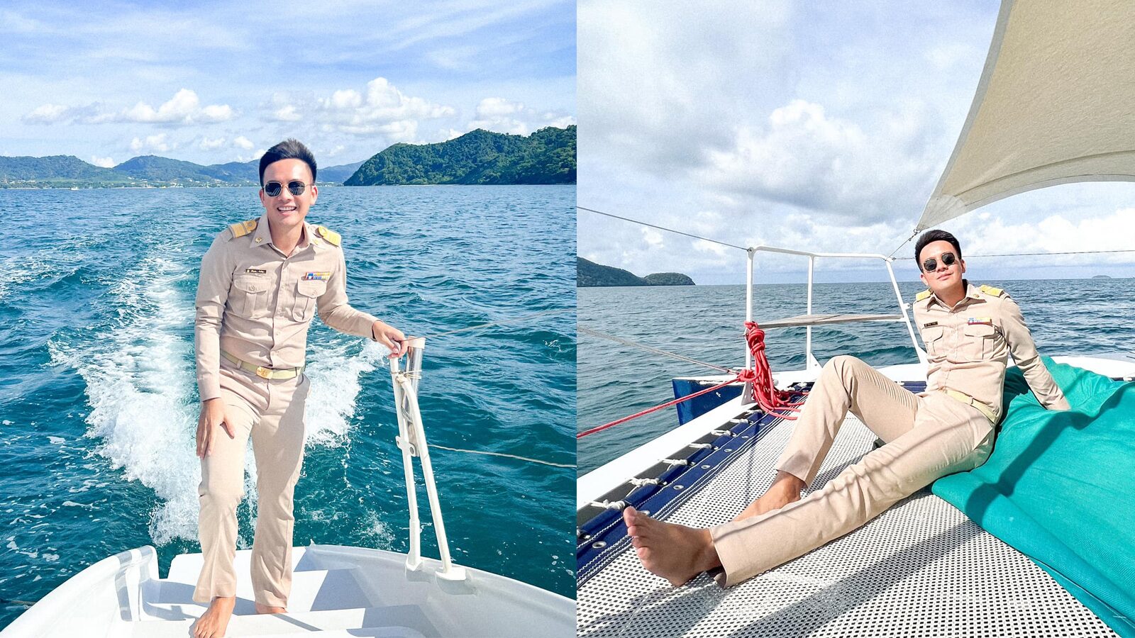 ครูหนุ่มจัดให้ ใส่ชุดข้าราชการเที่ยวทะเล รับลมถ่ายรูปเท่ๆ ชาวเน็ตถูกใจเพียบ