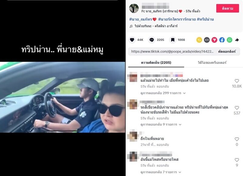 จากกรณีมี คลิป ในติ๊กต็อก ชื่อ Fc นาย_ณภัทร {เรารักนาย} เป็นคลิป พระเอกหนุ่มนาย ณภัทร และ แม่หมู พิมพ์ผกา นั่งอยู่บนรถ