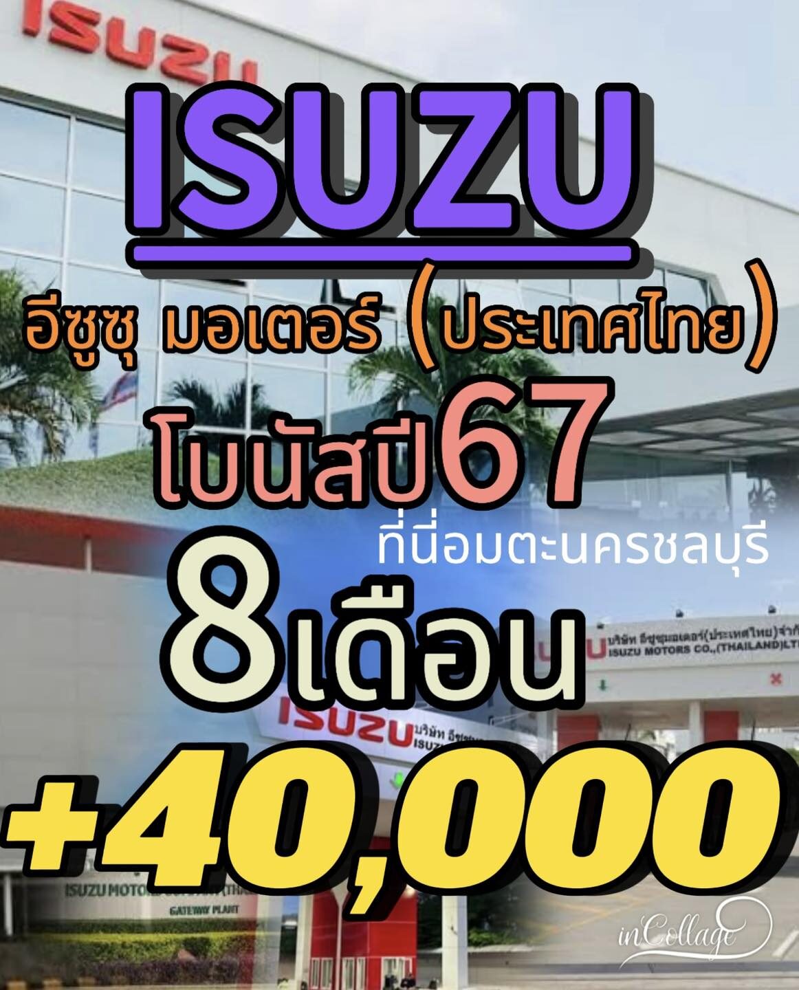 พร้อมระบุข้อความว่า อีซูซุ มอเตอร์ (ประเทศไทย) โบนัสปี 67 จำนวน 8 เดือน บวกเงินพิเศษอีก 40,000 บาท
