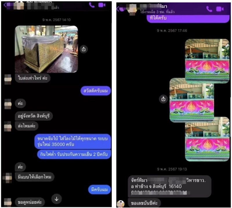 ล่าสุด วันที่ 5 ม.ค.68 ผู้สื่อข่าวเดินทางไปที่ร้านวิเชียรบุรีโลงเย็น ซึ่งตั้งอยู่ในพื้นที่ ต.น้ำร้อน อ.วิเชียรบุรี จ.เพชรบูรณ์ พบกับนายชยุตพงศ์ บุญเป้า เจ้าของร้านเล่าว่า เมื่อวันที่ 9 พฤษภาคม 2567 ผู้ตายได้ทักแชทข้อความติดต่อสั่งซื้อโลงเย็น 1 ใบ ขนาดจัมโบ้ราคา 35,000 บาท ลายพญานาค ซึ่งน้อยคนที่จะสั่งลายนี้