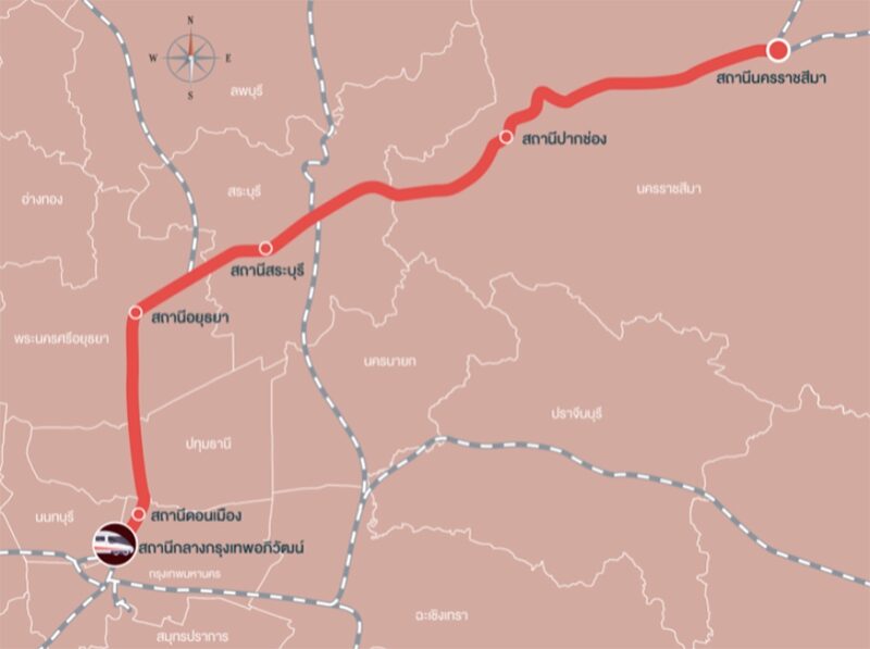 โดยมีสถานีรายทาง 6 สถานี ประกอบด้วย 1.สถานีกลางกรุงเทพอภิวัฒน์ 2.สถานีดอนเมือง 3.สถานีอยุธยา 4.สถานีสระบุรี 5.สถานีปากช่อง 6.สถานีนครราชสีมา