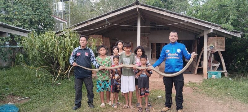 วันที่ 31 ธันวาคม 2568 นางอรัญญา ทองกอบสม อายุ 52 ปี อยู่หมู่ 3 ต.คูหา อ.สะบ้าย้อย จ.สงขลา พบว่ามีงูขนาดใหญ่ นอนขดตัวอยู่หลังชั้นวางทีวี ขอให้ นายเอกสิทธิ์ จันทร์พร้อย , น.ส.วัจนีย์ อะตะราใจ เจ้าหน้าที่ทีมปราบอสรพิษอาสาพิทักษ์งู สงขลา และ นายยูโซ๊ะ อาหลี เจ้าหน้าที่มูลนิฮิลาลอะห์มัรสะบ้าย้อยรุดช่วย