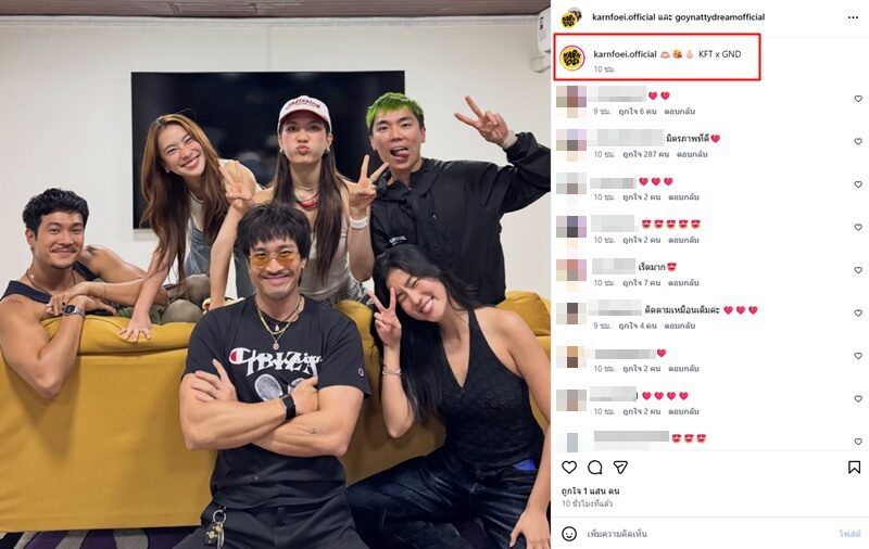 ด้วยใบหน้าเปื้อนยิ้มของทุกคน พร้อมแคปชั่นการกลับมารวมตัวกันอีกครั้งของทั้ง 6 คนด้วยว่า “KFT x GND” งานนี้แฟนๆตั้งตารอติดตามกันเลย เข้ามาแห่กดไลก์นับแสนไลก์ พร้อมทั้งคอมเมนต์ถึงมิตรภาพของเพื่อนๆกลุ่มนี้ด้วย อาทิ