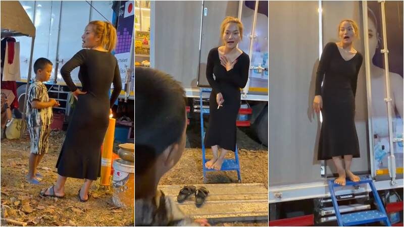 ทั้งนี้ในคลิปดังกล่าว เผยให้เห็นเด็กน้อยคนหนึ่งเดินเข้ามาหลังเวที กำลังยืนคุยอยู่กับผู้หญิงชุดดำ เพื่อตามหา พี่ใหม่ พัชรี โดยมีความตั้งใจที่จะมาขายเฟรนช์ฟรายส์ทอด แต่เดินตามหาจนทั่วก็หาไม่เจอ