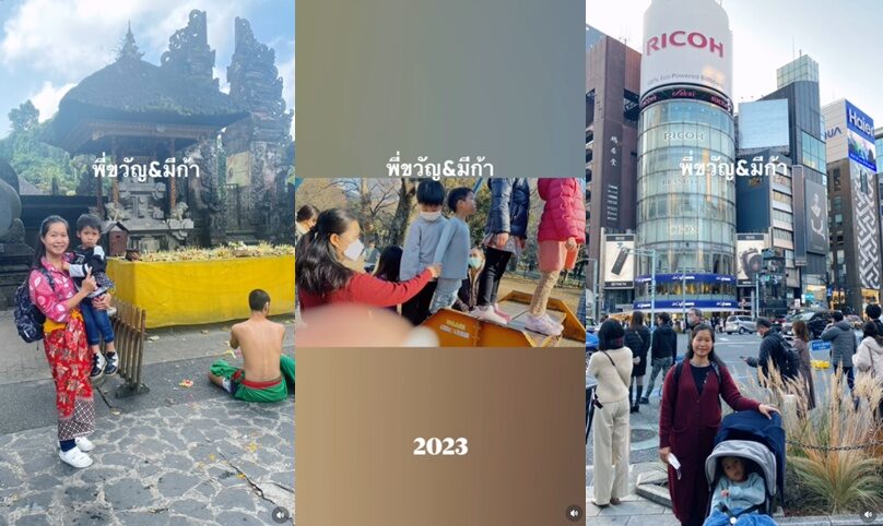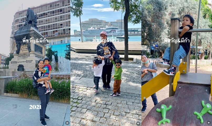 เป็นครอบครัวที่เดินทางท่องเที่ยวในต่างแดนกันอยู่บ่อยๆ ล่าสุดคุณยายเหน่ง อรศรี คุณยายของหลานๆ น้องมีก้า-น้องมีญ่า ลูกชายและลูกสาวฝาแฝดสุดน่ารักของนางเอกดังมาร์กี้ ราศรี และ ป๊อก ภัสสรกรณ์ รวบรวมโมเมนต์ประทับใจ น้องมีก้า กับ พี่ขวัญ พี่เลี้ยงคนสนิท ไปดูแลกันทุกที่ทุกช่วงเวลาด้วยความรัก พร้อมแคปชั่นเล่าว่า
