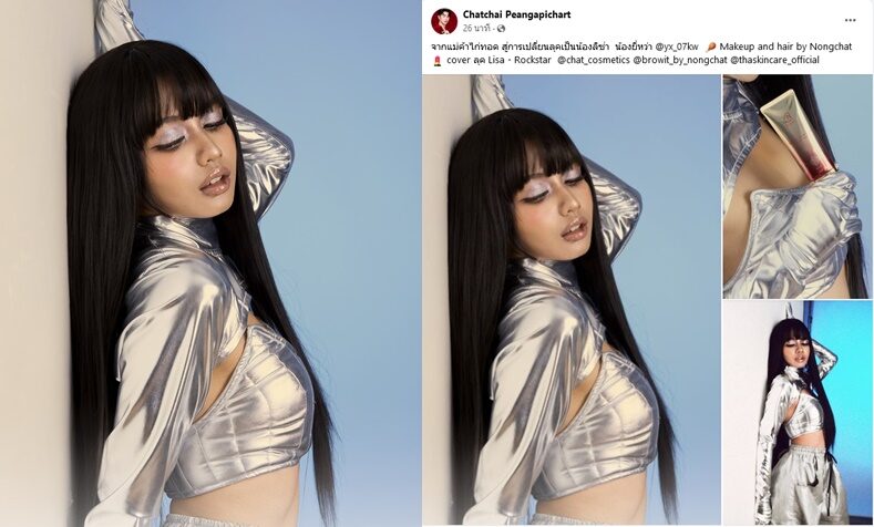 “จากแม่ค้าไก่ทอด สู่การเปลี่ยนลุกส์เป็นน้องลิซ่า น้องยี่หว่า @yx_07kw Makeup and hair by Nongchat cover ลุค Lisa - Rockstar @chat_cosmetics @browit_by_nongchat @thaskincare_official”