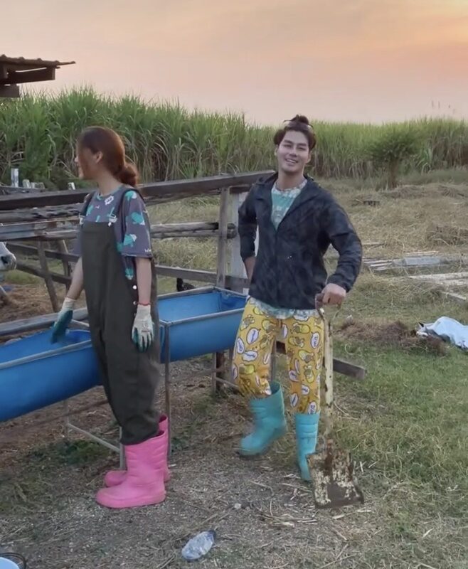 สวนเป็นยังไงบ้าง? "ตอนนี้ก็เริ่มโตขึ้นเรื่อยๆ แล้ว พวกต้นไม้ ไม้ผลที่เราทำกันมา 3 ปีกว่าละ ตั้งแต่โควิดแรกๆ เลย ตอนนี้ก็เริ่มโตมีผลผลิตบ้างแล้ว พื้นรวมๆ ประมาณ 10 ไร่แล้ว จากเมื่อก่อน 6 ไร่ ขอบเขตมันกว้างขึ้น การดูแลก็เพิ่มขึ้น มีทั้งสวน มีน้องหมา 4-5 ตัวที่เก็บมาเลี้ยง แล้วอนาคตก็จะทำเป็นรีสอร์ต คาเฟ่ ที่จัดงานสัมมนา งานวิวาห์ด้วย ตอนนี้คือให้ต้นไม้โต รอจัดสวน จะเป็นสวนแนวอังกฤษ"