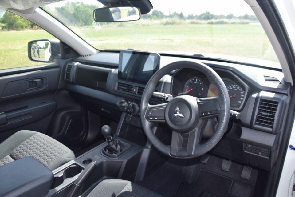 ภายในเน้นการใช้งานจริงๆข้าวของที่ให้มาจัดว่าจำเป็นทั้งหมดเริ่มที่ คอนโซลหน้าทรงเหลี่ยมสไตล์ Horizontal Axis จัดวางสวิตช์ควบคุมต่างให้มองเห็นควบคุมได้สะดวกง่ายดายแม้ในขณะที่สวมถุงมือหนา ทั้งพวงมาลัย ก้านจับ และมือจับเปิดประตู ล้วนได้รับการออกแบบภายใต้แนวคิด Mitsubishi Touch เน้นที่ความสะดวกสบายในการหยิบจับได้อย่างกระชับมือพร้อมออปชันประจำรถได้แก่ ชุดมาตรวัดพร้อมจอแสดงข้อมูล MID 3.5 นิ้ว แผงคอนโซลกลางมีช่องวางแก้วน้ำที่รองรับแก้วขนาดใหญ่ 2 ใบพร้อมกล่องเก็บของที่รองรับขวดพลาสติกขนาด 600 มิลลิเมตรได้มากถึง 4 ขวด