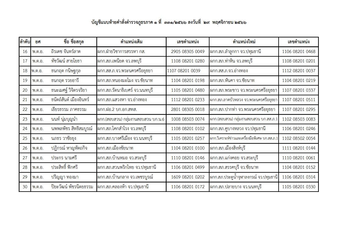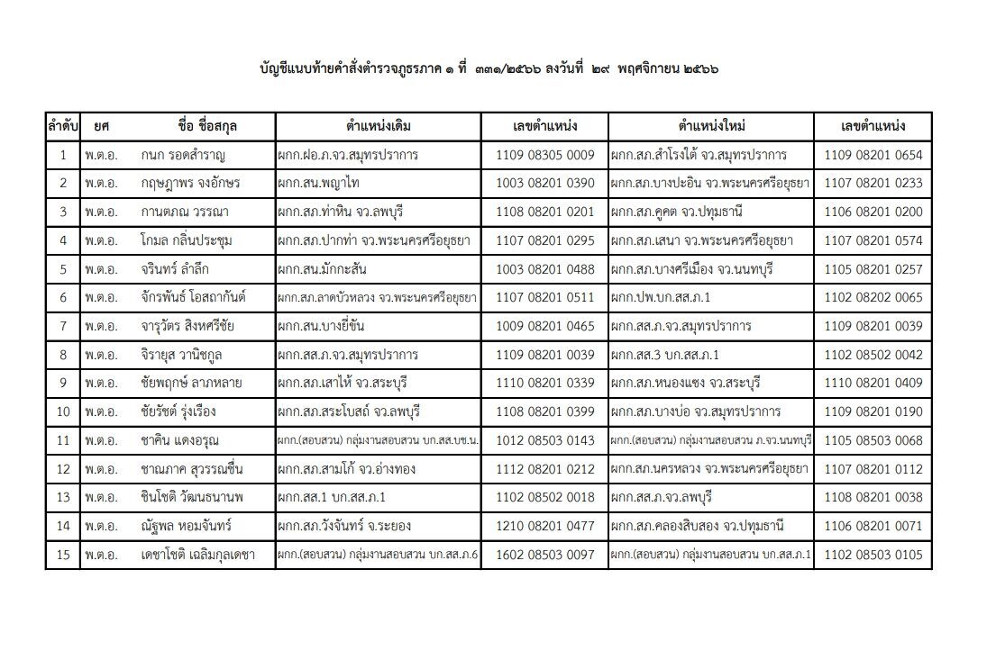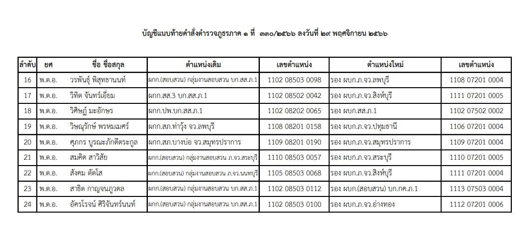 วันที่ 2 ธ.ค.66 สำนักงานตำรวจแห่งชาติ ได้ออกคำสั่งแต่งตั้งโยกย้ายนายตำรวจสังกัดตำรวจภูธร ทั่วประเทศ โดยมีผลตั้งแต่เมื่อวันที่ 29 พ.ย.66 เป็นต้นไป มีรายชื่อดังต่อไปนี้