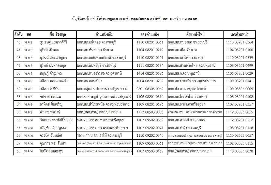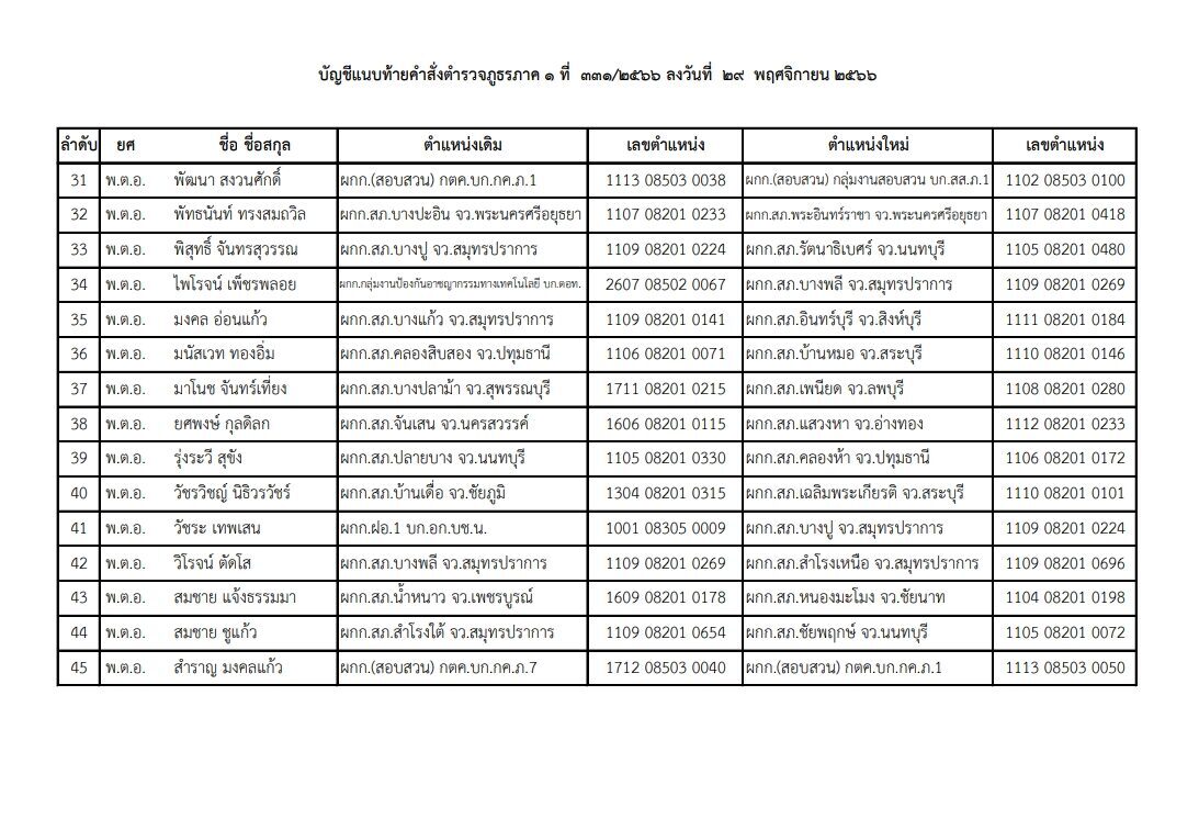เปิดคำสั่ง แต่งตั้งโยกย้าย ตำรวจภูธรและกองบัญชาการทั่วประเทศ