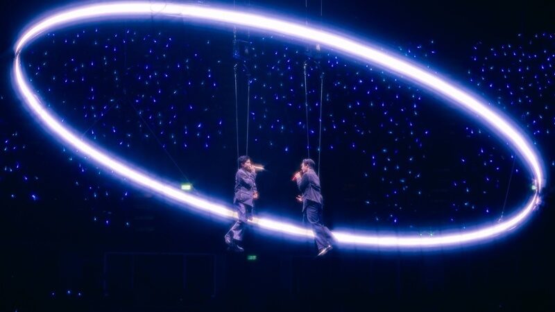 จากนั้นก็เข้าสู่พาร์ตของเมดเล่ย์เพลงซึ้งๆ ที่ทั้งคู่ต่างได้บอกเล่าเรื่องราวของพวกเขาผ่านบทเพลงได้ลงตัวสุดๆ โดยเฉพาะเพลง“ข้างกัน” ที่สองหนุ่มโหนสลิงอยู่ตรงกลางมีวงแหวนหมุนรอบๆ โอบกอดความรักความเอ็นดูของกันและกันเอาไว้ ท่ามกลางโปรดักชั่นอลังการสุดจึ้งประทับใจเหล่าคุณหนูไปเต็มๆ รวมไปถึงพาร์ทเมดเล่ย์เพลงเร็วก็โชว์ความน่ารักทะเล้นเป็นกันเองกับตัวตนที่เป็นเอกลักษณ์และการเติบโตของพวกเขามาจนถึงวันนี้