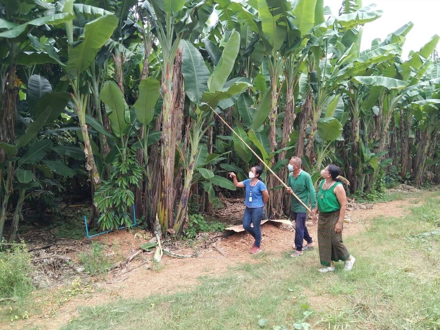 และสามารถแปรรูปเพื่อยกระดับมูลค่าของผลิตภัณฑ์และจำหน่ายได้สูงขึ้น เช่น ส่งเสริมผลิตภัณฑ์จากใบตอง จำหน่ายภายใต้แบรนด์ “ใบตองคลองกระจง” เช่น ปอเส้นกาบกล้วยตานี/เชือกกล้วย ราคา 30 บาท/มัด ภาชนะจากใบตองที่ใช้ได้ทั้งอุณหภูมิร้อนและเย็น และเข้าไมโครเวฟได้ราคาเฉลี่ย 3 บาท/ใบและในช่วงเทศกาลลอยกระทงทางกลุ่มแปลงใหญ่ได้ผลิต ประทีปใบตองแห้ง ที่ย่อยสลายง่ายสำหรับจำหน่ายช่วงเทศกาลลอยกระทงอีกด้วย