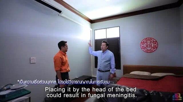 เมื่อเดินเข้ามาในห้องนอน อ.อ๊อด เผยว่าการ ‘ติดตั้งแอร์’ ไม่ควรวางแอร์บนหัวเตียง เพราะเป็นตัวซับความชื้น อาจทำให้ผู้อยู่อาศัยเป็นเชื้อราในสมองได้