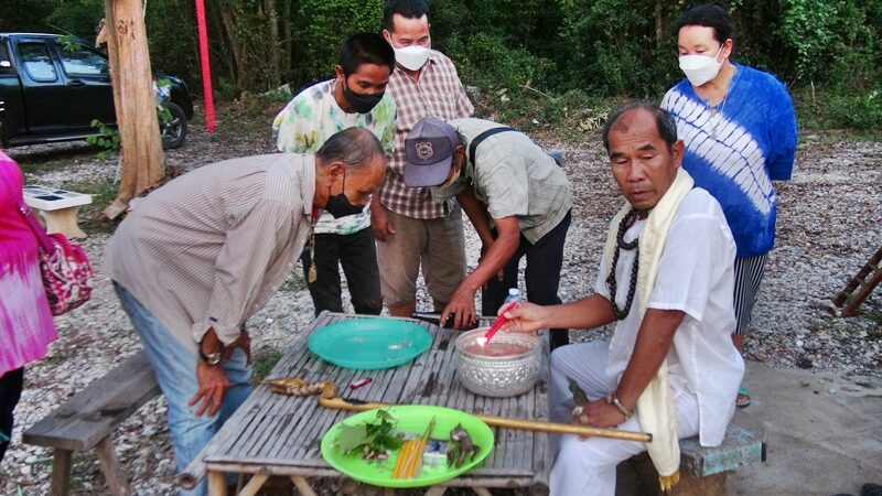 อาจารย์เริง ได้จุดธูปทำพิธีบอกกล่าว ปู่ชุนเดช ปู่ขุนจันทร์ ด้วยภาษาบาลี ขอให้บอกเลขเพื่อหยดลงในขันธ์น้ำมนต์ด้วยน้ำตาเทียนสีแดง ท่ามกลางนักเสี่ยงโชคที่มารอลุ้นอย่างใจจดใจจ่อว่างวดนี้ ปู่ขุนเดช ปู่ขุนจันทร์ จะให้เลขอะไร โดยก่อนหน้านี้ได้มีหนุ่มเชื่อว่ามีเซ้นส์ เห็นเลขที่ต้นโพธิ์ คือ เลข 856 พร้อมกับบอกว่า เลขจะมาเหมือนตัวเดิมที่อยู่ข้างศาลที่ออกไปแล้ว คือ 957 และ 57 กับ 59