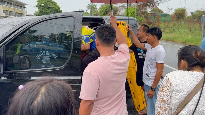 วันที่ 10 พ.ค.2568 เจ้าหน้าที่กู้ชีพเทศบาลตำบลเมืองเก่า มูลนิธิสว่างขอนแก่น และกู้ชีพโรงพยาบาลขอนแก่น เร่งทำการช่วยเหลือผู้บาดเจ็บในรถตู้ ยี่ห้อฮุนได ทะเบียน กรุงเทพมหานคร หลังประสบอุบัติเหตุถูกรถบรรทุกปูนพ่วง 18 ล้อ ทะเบียน กรุงเทพมหานคร บนถนนกลางเมือง บ้านโนนตุ่น ต.เมืองเก่า อ.เมือง จ.ขอนแก่น