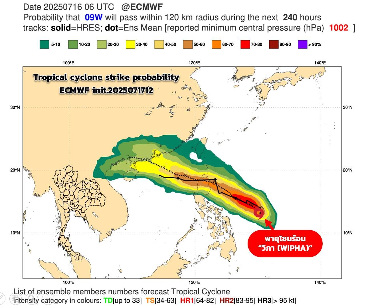 วันที่ 18 ก.ค.2568 กรมอุตุนิยมวิทยา อัพเดทสถานการณ์และเส้นทางเดินพายุเช้าวันนี้ (18/7/68) : เวลา 04.00น. วันนี้ พายุดีเปรสชันที่มีศูนย์กลางอยู่ทางตะวันออกของประเทศฟิลิปปินส์ ทวีกำลังแรงขึ้นเป็นพายุโซร้อน "วิภา (WIPHA)" แล้ว กำลังเคลื่อนตัวทางตะวันตกเฉียงเหนือ คาดว่าจะเคลื่อนผ่านหัวเกาะลูซอลประเทศฟิลิปปินส์ และลงสู่ทะเลจีนใต้ตอนบนในเช้าของพรุ่งนี้(19 ก.ค.68)