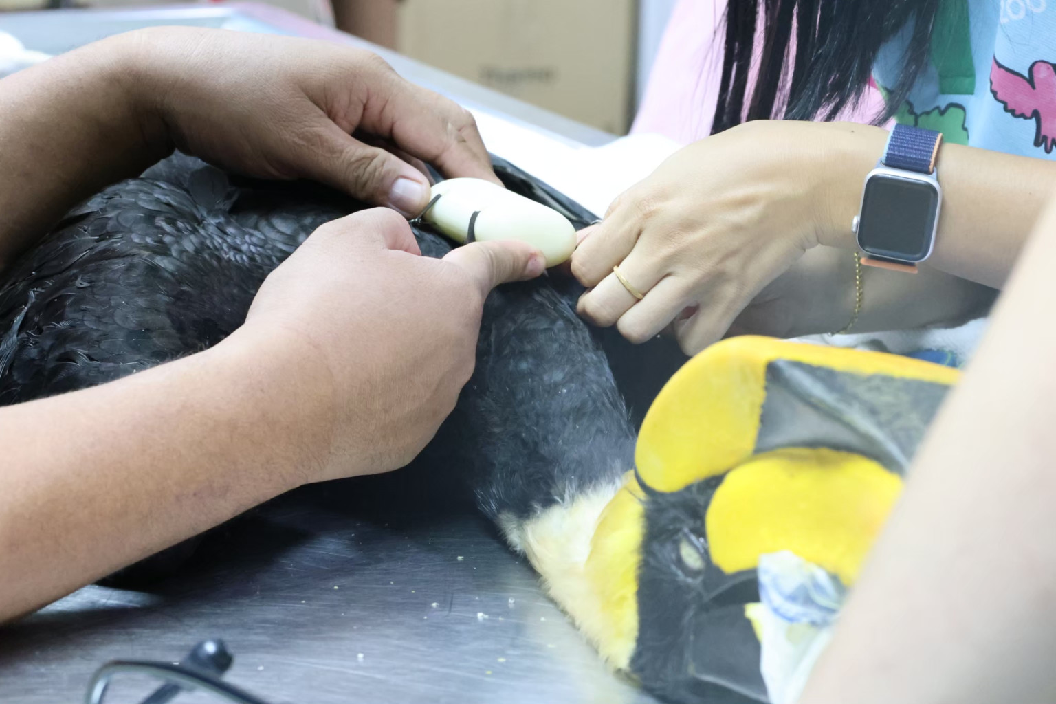มีความร่วมมือกับ บางจาก เขาเขียว ภายใต้แผนงาน "โครงการชีวานุรักษ์ พันธะกิจเพื่อความหลากหลายทางชีวภาพ A mission for biodiverdity" โดยร่วมพัฒนานวัตกรรมเครื่องมือ GNSS ในการติดตามนกกาฮังในพื้นที่ อช.เเจ้ซ้อน ครั้งนี้ ที่เดินทางไป เราจะไปศึกษาสภาพแวดล้อมของพื้นที่ และทดสอบการรับ-ส่งข้อมูลของ GNSS มีข้อจำกัด หรือติดปัญหาการรับส่งสัญญาณหรือไม่ ก่อนการติดตั้งที่ตัวนกจริงๆ โดยกำหนดจะปล่อยนก 1 คู่ ภายในเดือนสิงหาคม - กันยายน 2568