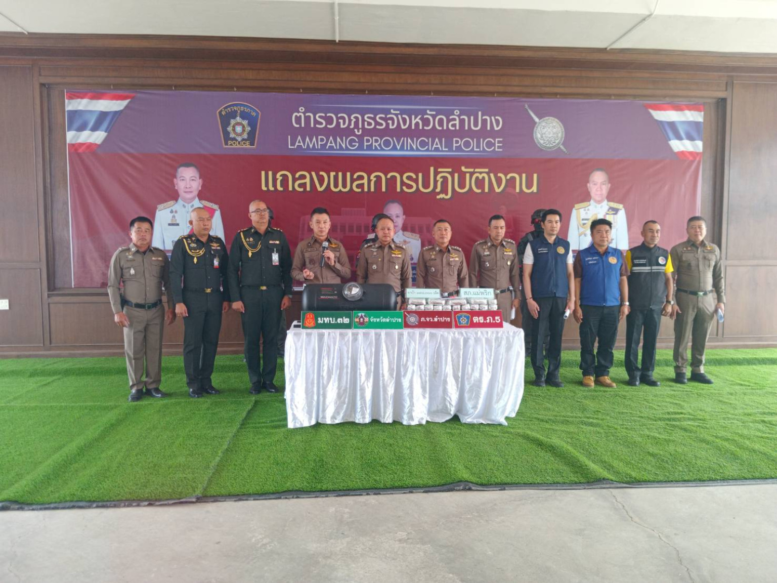 วันที่ 18 มิ.ย.68 เวลา 14.00 น. พล.ต.ต.ภูมิปัญญ์ญา นวตระกูลพิสุทธิ์ ผบก.ภ.จว.ลำปาง, พลตำรวจตรี สังเวียน อินตากูลผู้ทรงคุณวุฒิตำรวจช่วยราชการภูธรจังหวัดลำปาง พตอ กฤษฎา พันธ์เกษม พันตำรวจเอกศักดิ์ศรี ยะปาละ พันตำรวจเอก ชูวิทย์ กองแก้ว พันตำรวจเอก อัครินทร์ กาสา พันตำรวจเอกคมสัน สะอาดล้วน รองผู้บังคับการตำรวจภูธรจังหวัดลำปาง พ.ต.อ.ประสิทธิ์ หล้าสมศรี ผกก. สภ.แม่พริก และฝ่ายปกครองทางปลัดจังหวัดลำปาง พร้อมกับทหารมณฑลทหารบกที่ 32 ลำปาง ร่วมกันแถลงข่าวจับกุม 2 ผู้ต้องหา นาง ธนาภา วัย 42 ปี ชาวจังหวัดจันทบุรี และ นางสุภาภรณ์ วัย 41 ปี จังหวัดมหาสารคาม หลังจากขับรถยนต์เก๋ง โตโยต้า วีออส สีดำ ป้ายทะเบียนเชียงใหม่ ซุกซ่อนยาเสพติด ยาบ้า ในถังแก๊ส LPG โดยเจ้าหน้าที่ได้นำรถยนต์เก๋งคันดังกล่าวเข้าไป ในเครื่องเอกซเรย์ ปรากฏว่าไปเจอยาบ้ากว่า 198,000 เม็ด ซุกซ่อนอยู่ในถังแก๊ส LPG โดยเจ้าหน้าที่เอกซเรย์ และ นำยาบ้าออกมา