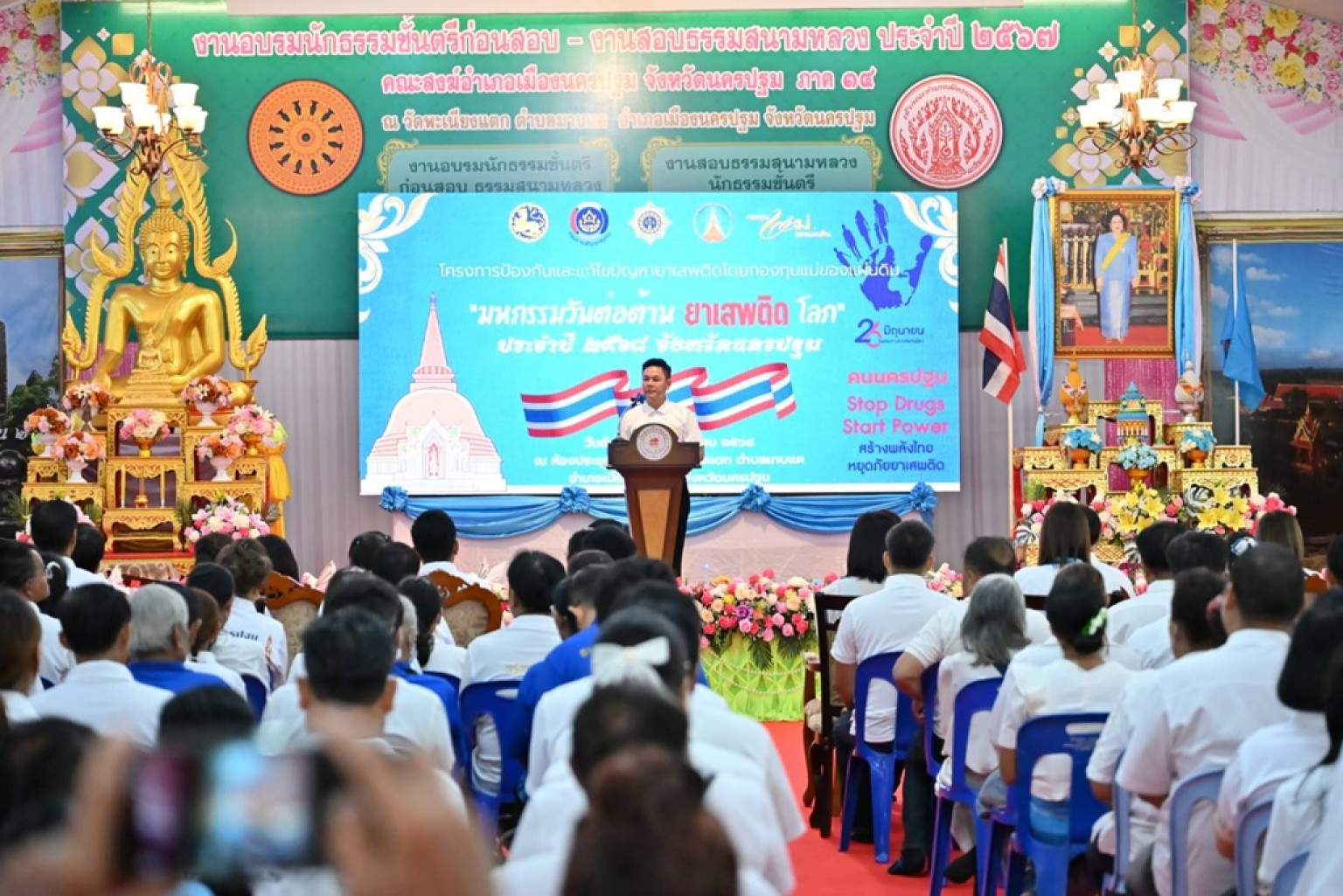 วันที่ 24 มิ.ย.68 ที่ห้องประชุมจารุโภ วัดพะเนียงแตก ตำบลมาบแค อำเภอเมือง จังหวัดนครปฐม นายอรรถวุฒิ พึ่งเนียม รองผู้ว่าราชการจังหวัดนครปฐม เป็นประธานเปิดกิจกรรมมหกรรมวันต่อต้านยาเสพติดโลกประจำปี 2568 ระดับจังหวัด พร้อมนำอ่านสารเนื่องในวันต่อต้านยาเสพติดโลก (26 มิถุนายน 2568) การประกาศเจตนารมณ์ต่อต้านยาเสพติด และนำกล่าวคำปฏิญาณตน โดยมีหัวหน้าส่วนราชการ เจ้าหน้าที่ เครือข่ายกองทุนแม่ของแผ่นดิน สมาชิกกองทุนแม่ของแผ่นดิน ภาคีเครือข่าย และประชาชน จำนวน 150 คนรวมกิจกรรมในครั้งนี้ เพื่อให้คณะกรรมการกองทุนแม่ของแผ่นดิน และสมาชิกกองทุนแม่ของแผ่นดิน รู้บทบาทและภารกิจหน้าที่ เพื่อประชาสัมพันธ์การดำเนินงานกิจกรรมให้แก่ประชาชนทราบ และสร้างความตระหนักถึงพิษภัยของยาเสพติด รวมถึงสร้างการรับรู้และเล็งเห็นความสำคัญของวันต่อต้านยาเสพติดโลก