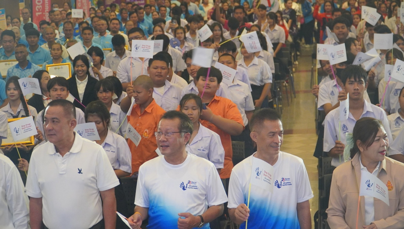 จากนั้นนายสุเทพ ชัยวัฒน์ ปลัดจังหวัดสระแก้ว ในฐานะเลขานุการศูนย์อำนวยการป้องกันและปราบปรามยาเสพติดจังหวัดสระแก้ว ได้กล่าวรายงานวัตถุประสงค์ของการจัดงาน ว่าตามมติองค์การสหประชาชาติ ได้กำหนดให้วันที่ 26 มิถุนายนของทุกปี เป็นวันต่อต้านยาเสพติดโลก จังหวัดสระแก้ว ได้ยึดถือปฏิบัติ และยืนยันเจตนารมณ์ที่จะเข้าร่วมในการรณรงค์ต่อต้านยาเสพติด โดยมีหน่วยงาน องค์กรภาคีที่เกี่ยวข้อง ทั้งภาครัฐ ภาคเอกชน และประชาชน ร่วมกันจัดกิจกรรมรณรงค์ต่อเนื่องมาจนถึงปัจจุบัน